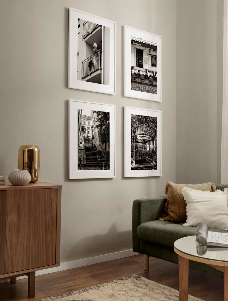 Le passe-partout est un panneau blanc mat qui entoure l'affiche pour la protéger du méthacrylate, et qui améliore également l'expressivité de l'œuvre et met en valeur ses détails.