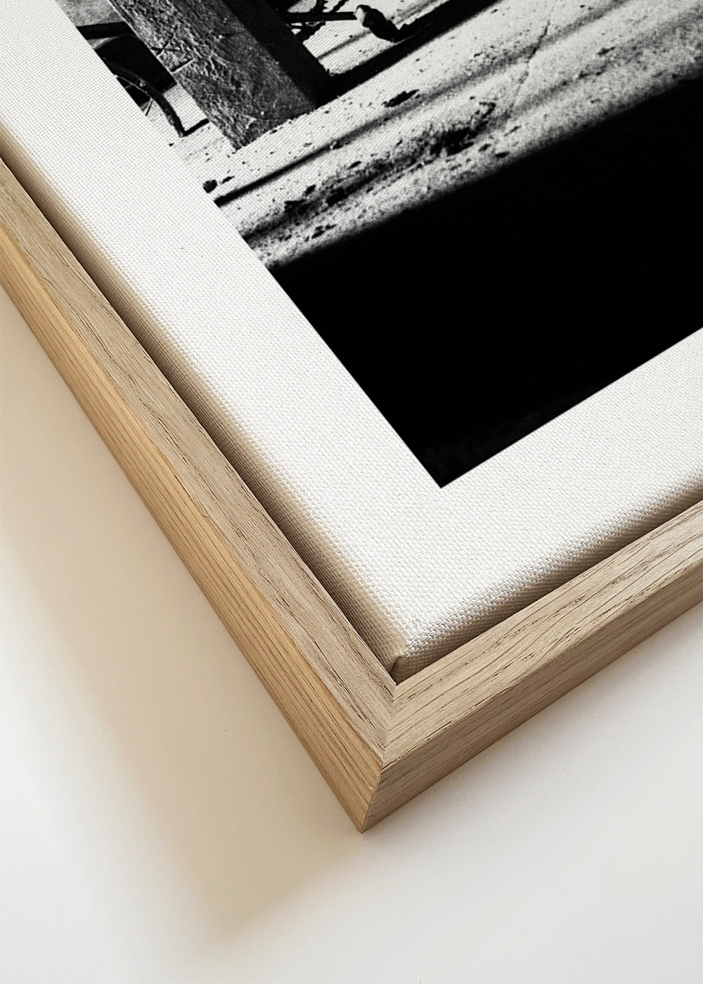 Nous travaillons avec des cadres en bois massif et en aluminium. Toutes les œuvres encadrées sont expédiées déjà montées et prêtes à être accrochées. La protection frontale est en verre acrylique transparent.