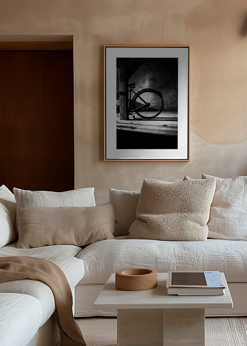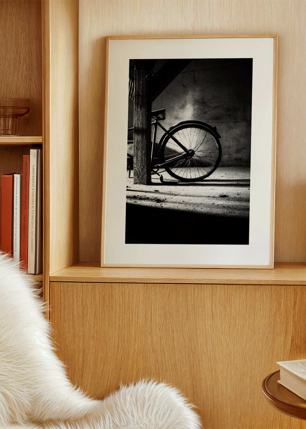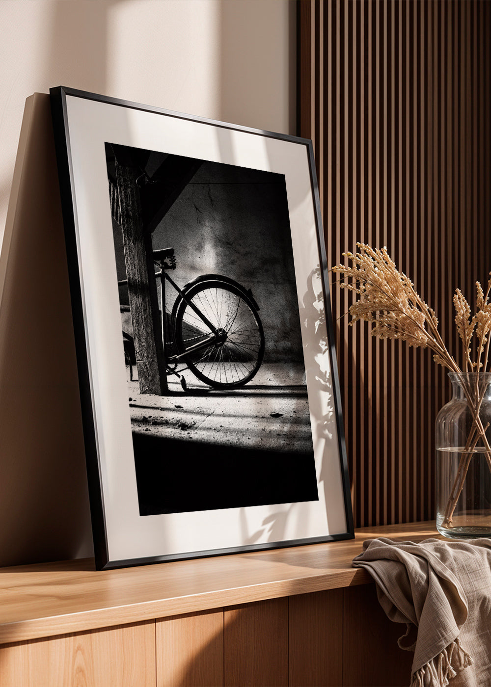 Un poster de notre sélection affiches vélo, avec des tonalités monochromes, et en portrait. La photographie est un art qui transforme n’importe quelle décoration. L'ajout de  tableaux photos  à la décoration intérieure permet de moderniser n'importe quelle pièce. Un mur vide est un mur triste, mais quelques photos vous apporteront un sourire. Cette œuvre comprend une bordure blanche qui encadre le modèle pour en rehausser le style.