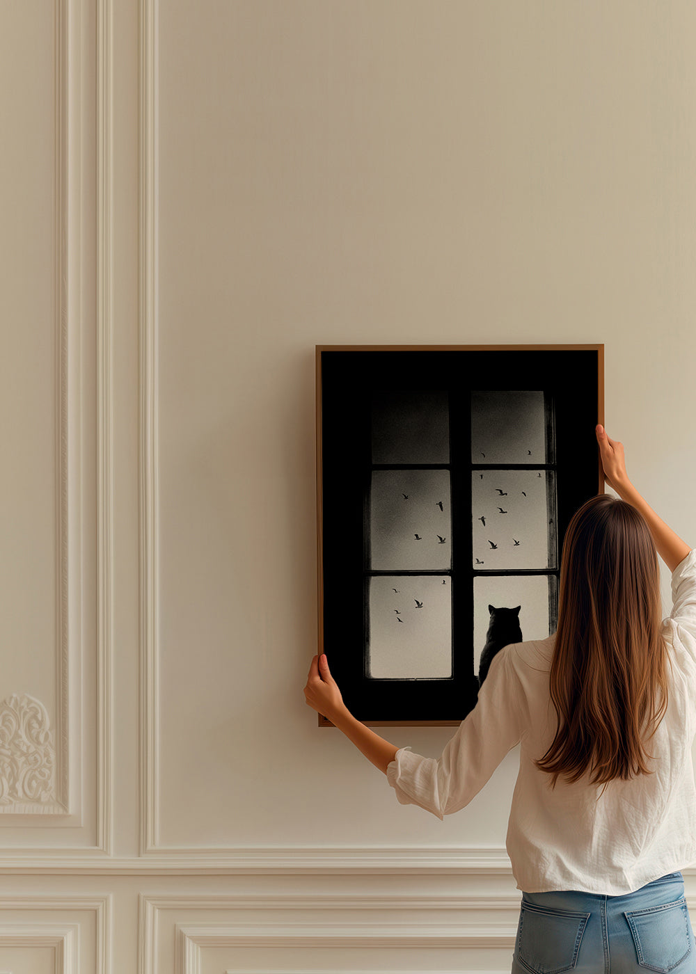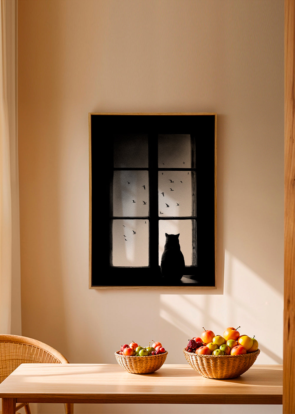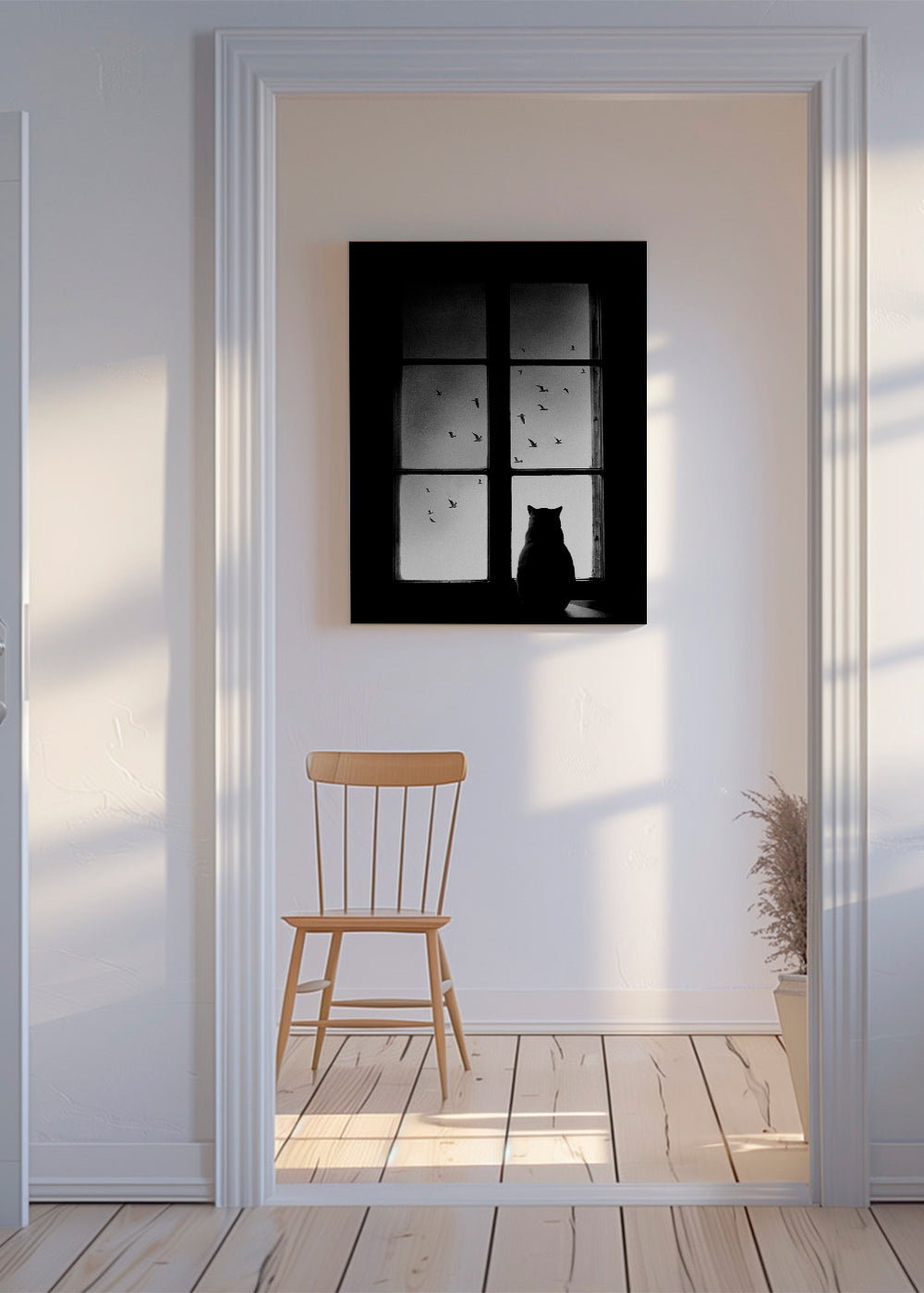 Une image de notre collection tableaux de chat, de l'artiste 1x, avec pigments monochromes, et avec orientation portrait. Les affiches d'animaux nous permettent de montrer notre côté le plus sauvage dans la décoration des murs. Ajoutez un peu d'art à la décoration de votre maison.