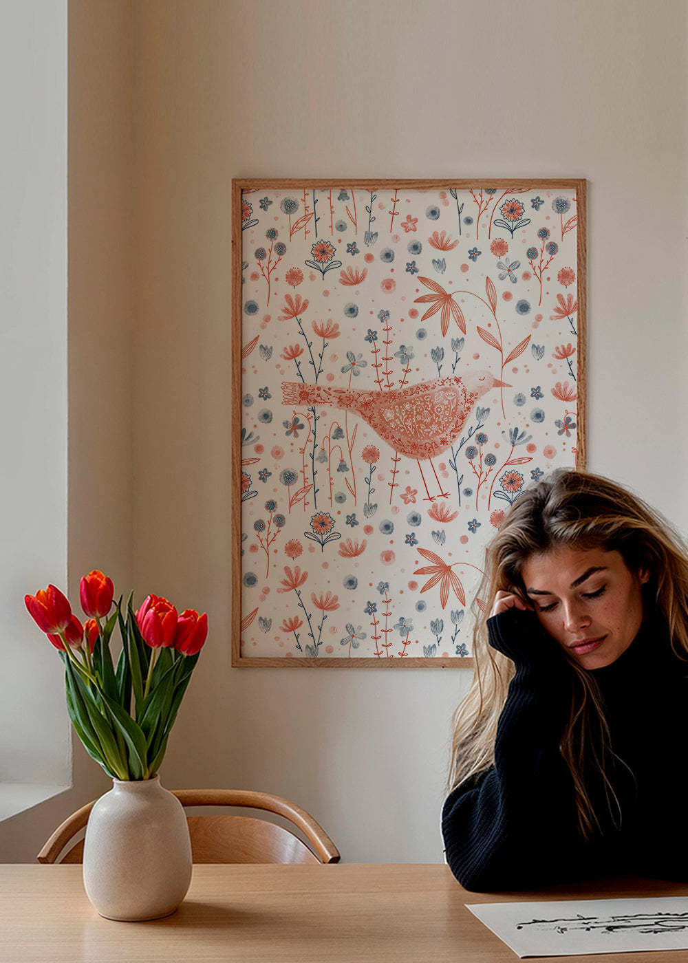 Cette oeuvre de notre répertoire affiches oiseaux, de Nic Squirrell, avec les couleurs rouges, et pour mettre en orientation portrait. Avec des lignes et des formes douces typiques des tableaux nordiques , une œuvre idéale pour des espaces simples et fonctionnels. Changez l'aspect d'une pièce en ajoutant simplement des tableaux aux murs.