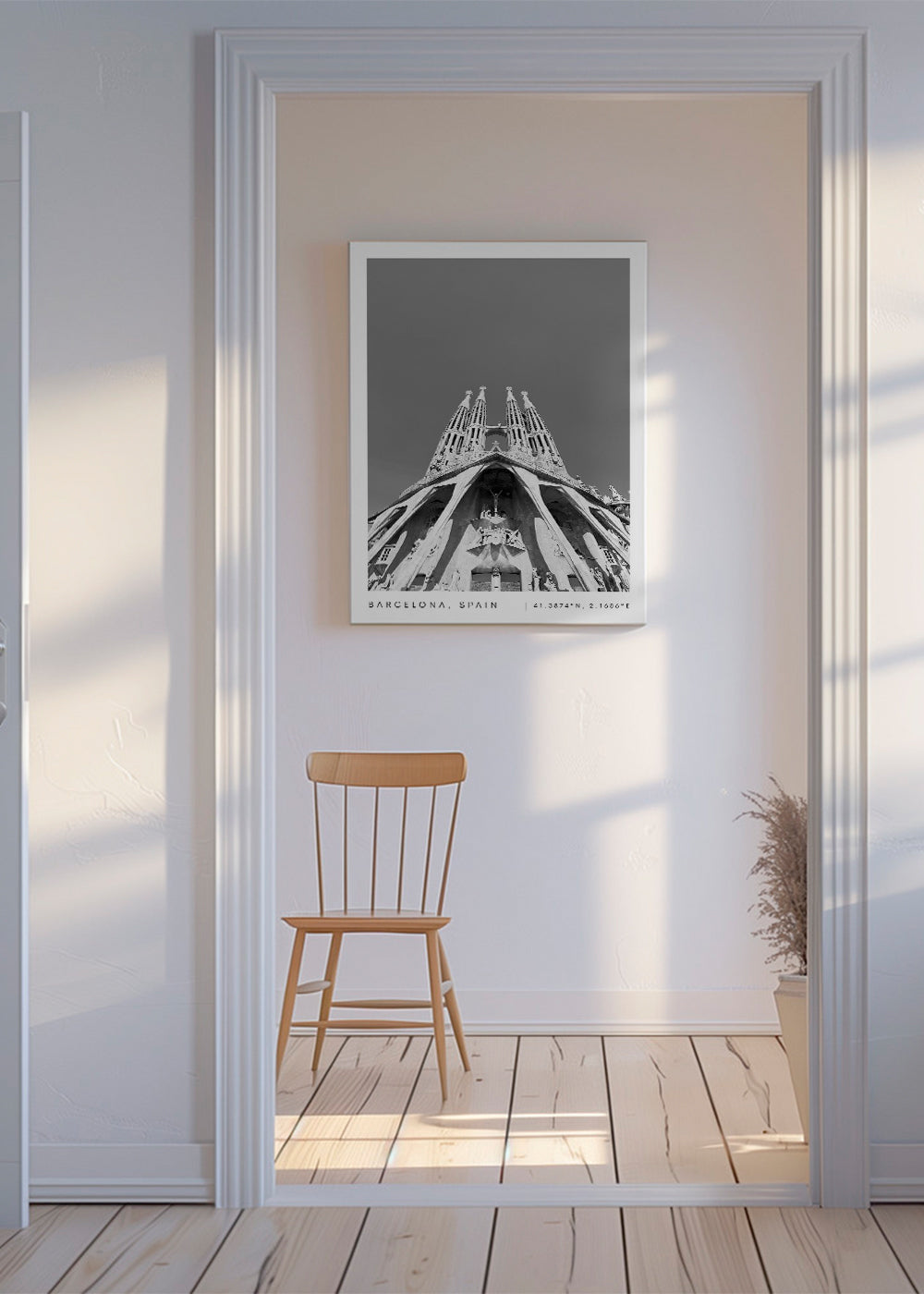 Le passe-partout est un panneau blanc mat qui entoure l'affiche pour la protéger du méthacrylate, et qui améliore également l'expressivité de l'œuvre et met en valeur ses détails.