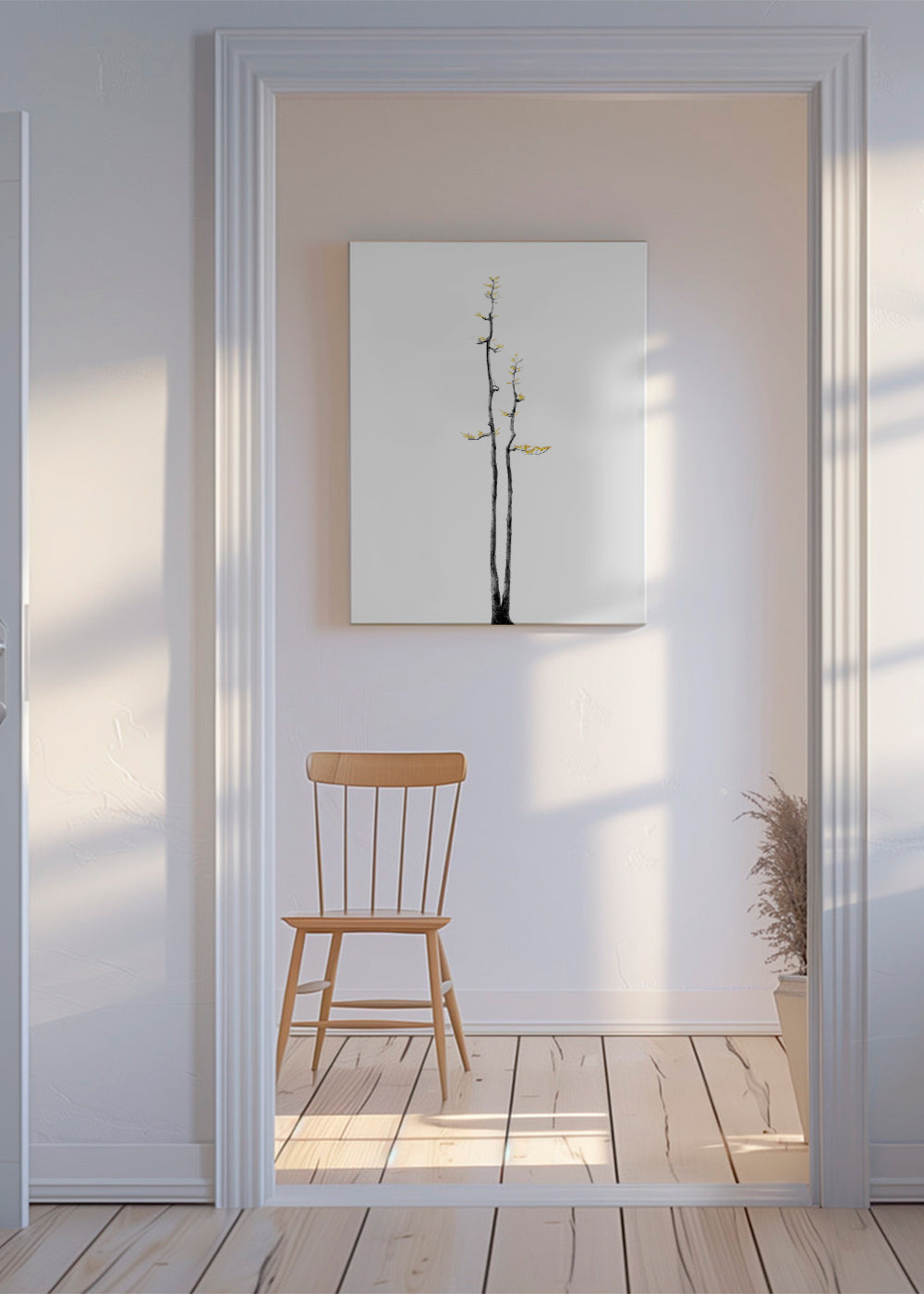 Jolie pièce de la collection affiches arbre, de amini54, avec des touches jaunes, et pour mettre en orientation portrait. Remplissez vos murs de nature en combinant cette œuvre avec d'autres tableaux à motifs botaniques . Des murs élégants pour des maisons chics.