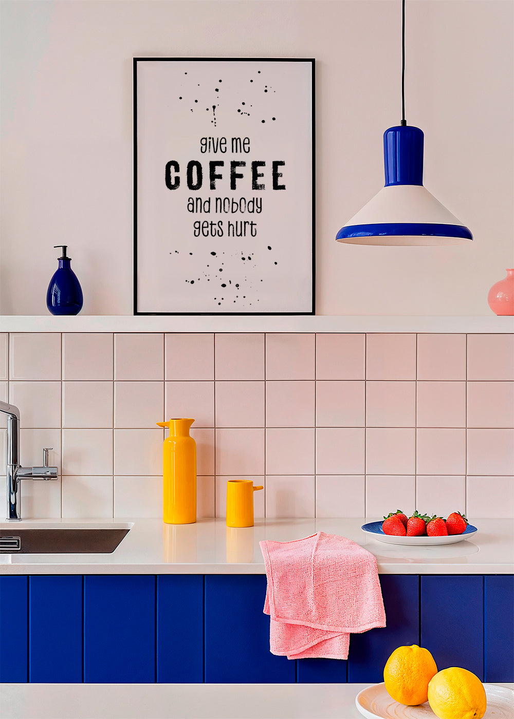 Un tableau de la collection affiches café, de l'artiste Melanie Viola, avec des nuances noirs, et pour mettre en portrait. Les tableaux de cuisine sont un élément décoratif parfait pour rendre cet espace plus accueillant. Fraîcheur et originalité.