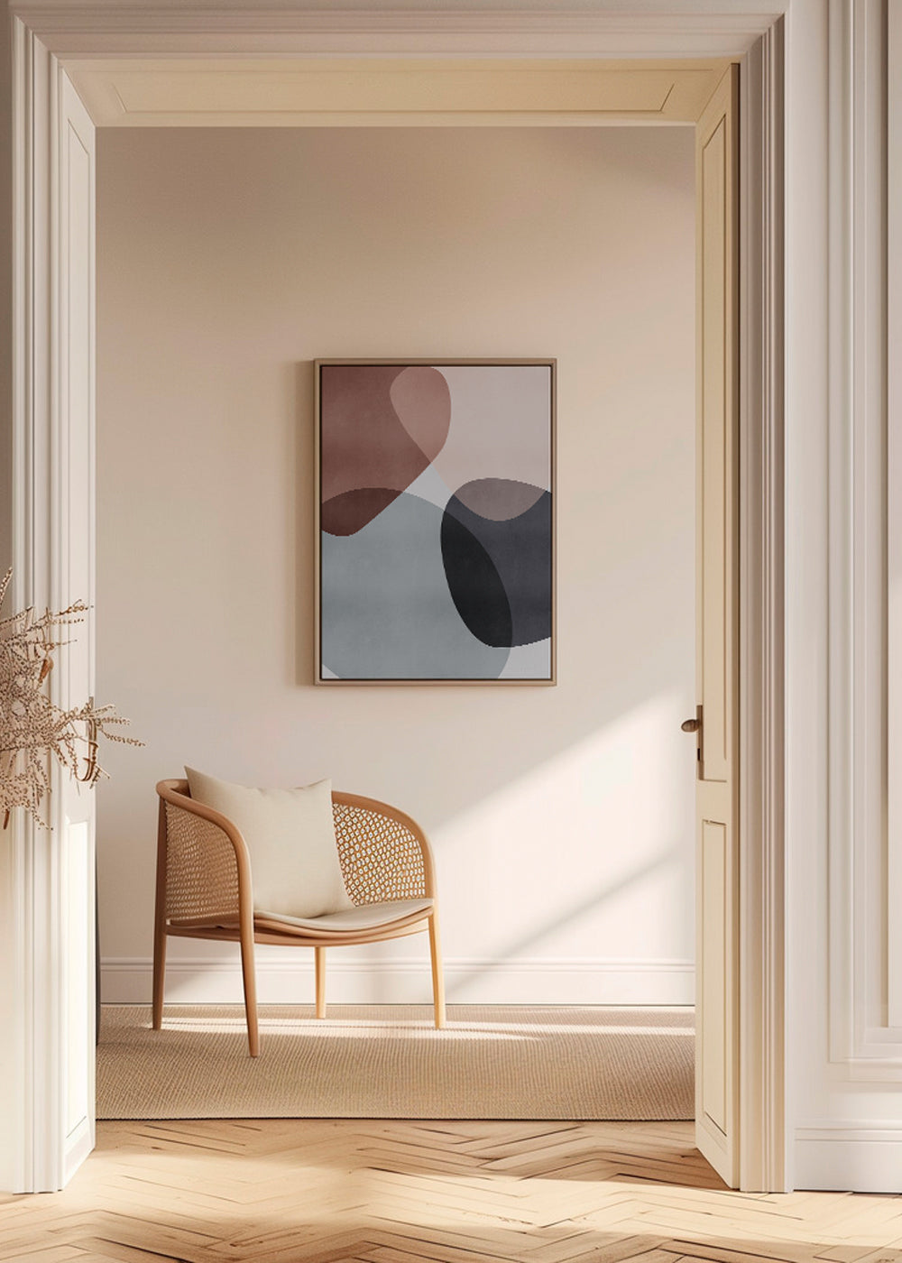 Ce affiche appartenant à la catégorie tableaux géométrique, de l'artiste Mareike Böhmer, avec pigments rouges, et pour mettre en orientation portrait. Cette œuvre aux formes abstraites est idéale à combiner avec les tableaux géométriques et l'art abstrait. C'est toujours un bon moment pour un changement intérieur.
