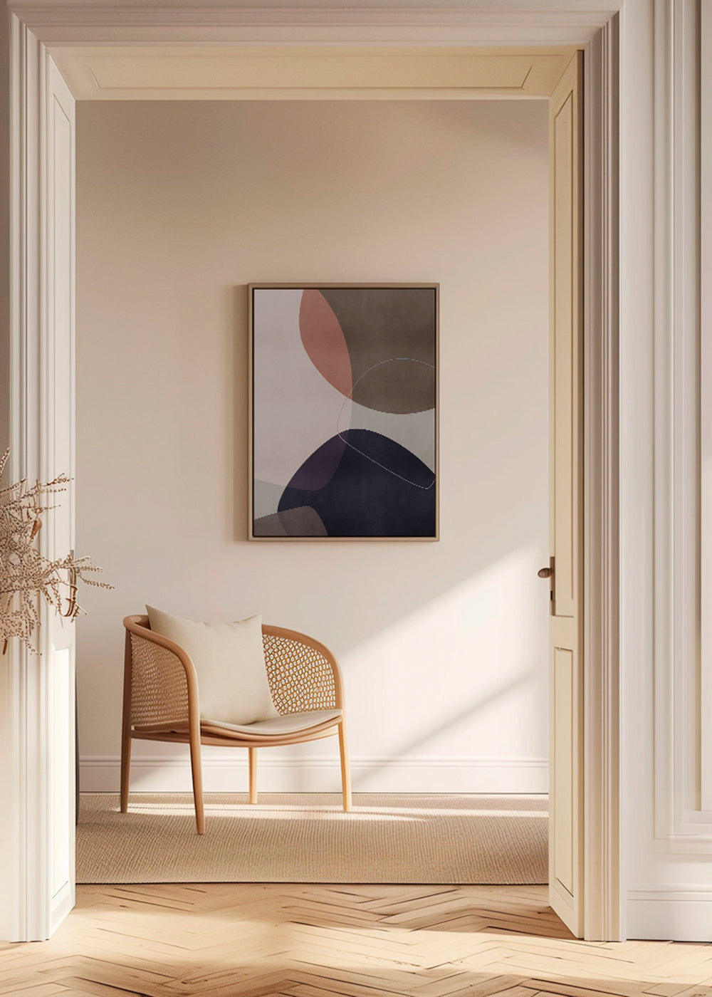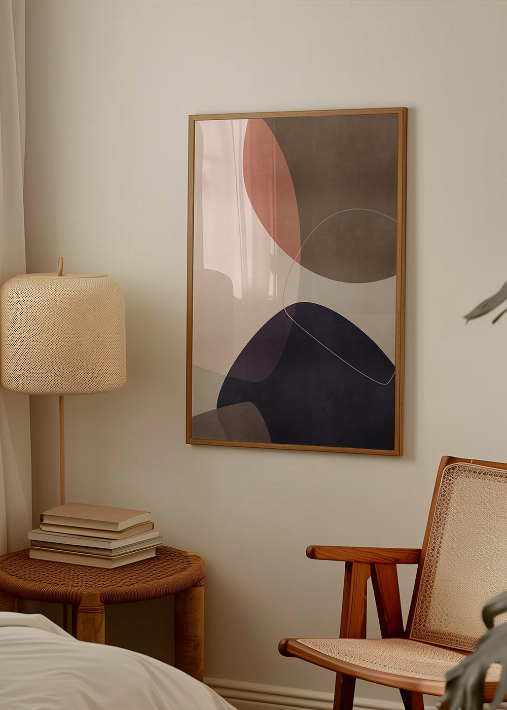 Ce affiche appartenant à la catégorie tableaux géométrique, de la collection de l'artiste Mareike Böhmer, avec des tonalités roses, et pour mettre en position portrait. Les formes géométriques et abstraites contribuent à créer une atmosphère légère et créative. Il n'y a pas de murs laids ou jolis, il y a des murs vides ou décorés.