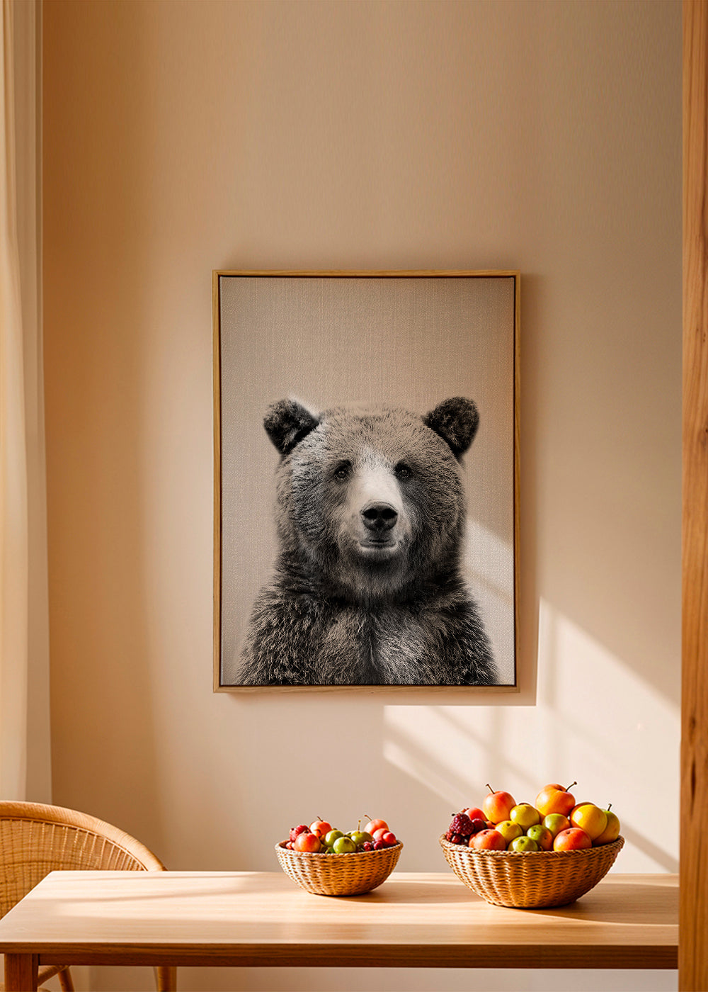 Une image de notre ensemble tableaux d'animaux, original de Gal Design, en couleurs gris, et en position portrait. Décorer avec des tableaux d'animaux est un moyen de transmettre de l'énergie grâce à vos murs. Oubliez les murs ennuyeux et fades.