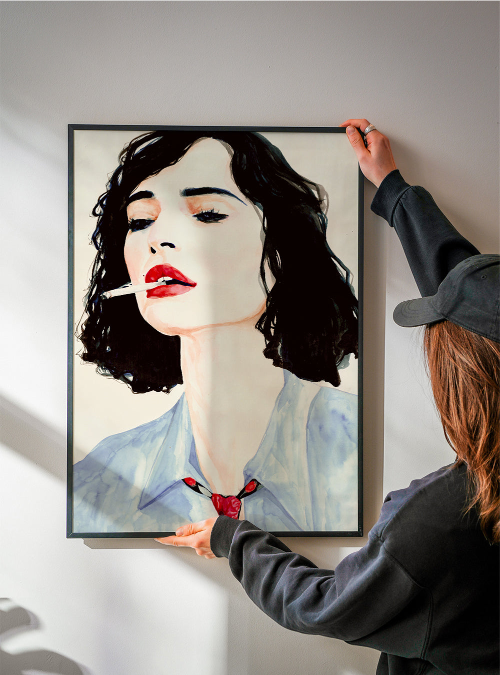 Le passe-partout est un panneau blanc mat qui entoure l'affiche pour la protéger du méthacrylate, et qui améliore également l'expressivité de l'œuvre et met en valeur ses détails.