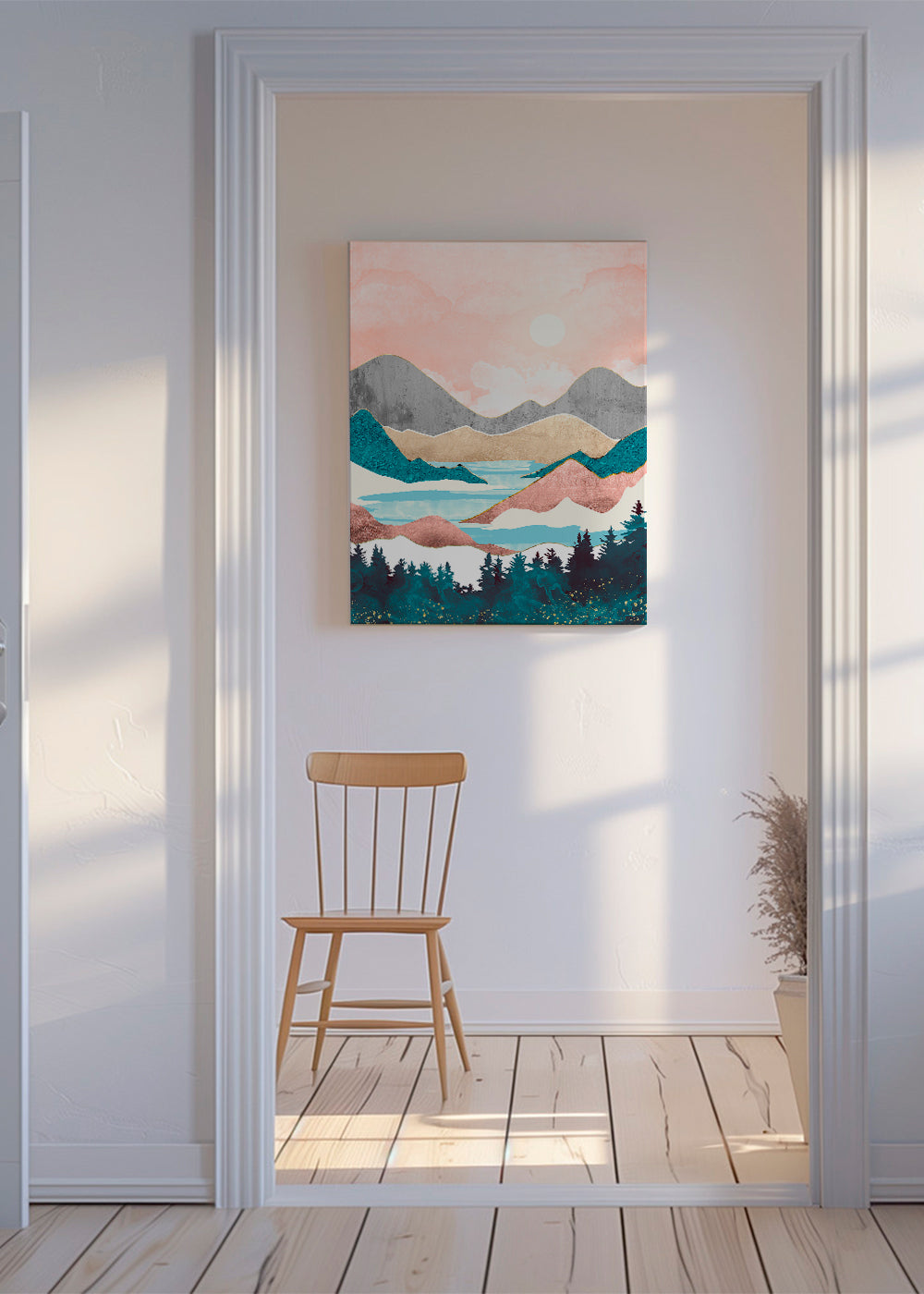 La toile ou toile photo est une toile supportée par un châssis en bois sur lequel nos œuvres d'art sont imprimées. Notre toile moderne utilise un tissu et du bois de pin de la plus haute qualité pour le châssis de 3,5 cm de profondeur.