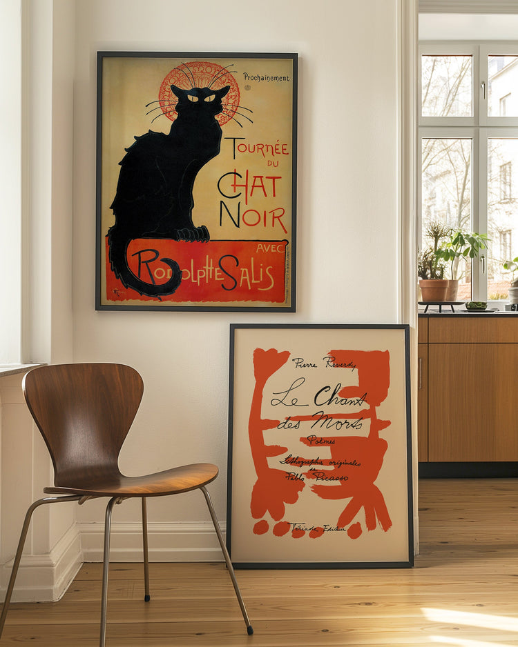 Le passe-partout est un panneau blanc mat qui entoure l'affiche pour la protéger du méthacrylate, et qui améliore également l'expressivité de l'œuvre et met en valeur ses détails.