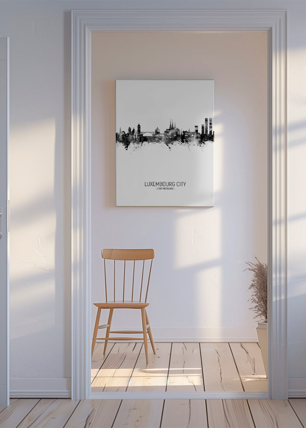 Tableau nordique Luxembourg City Skyline noir et blanc