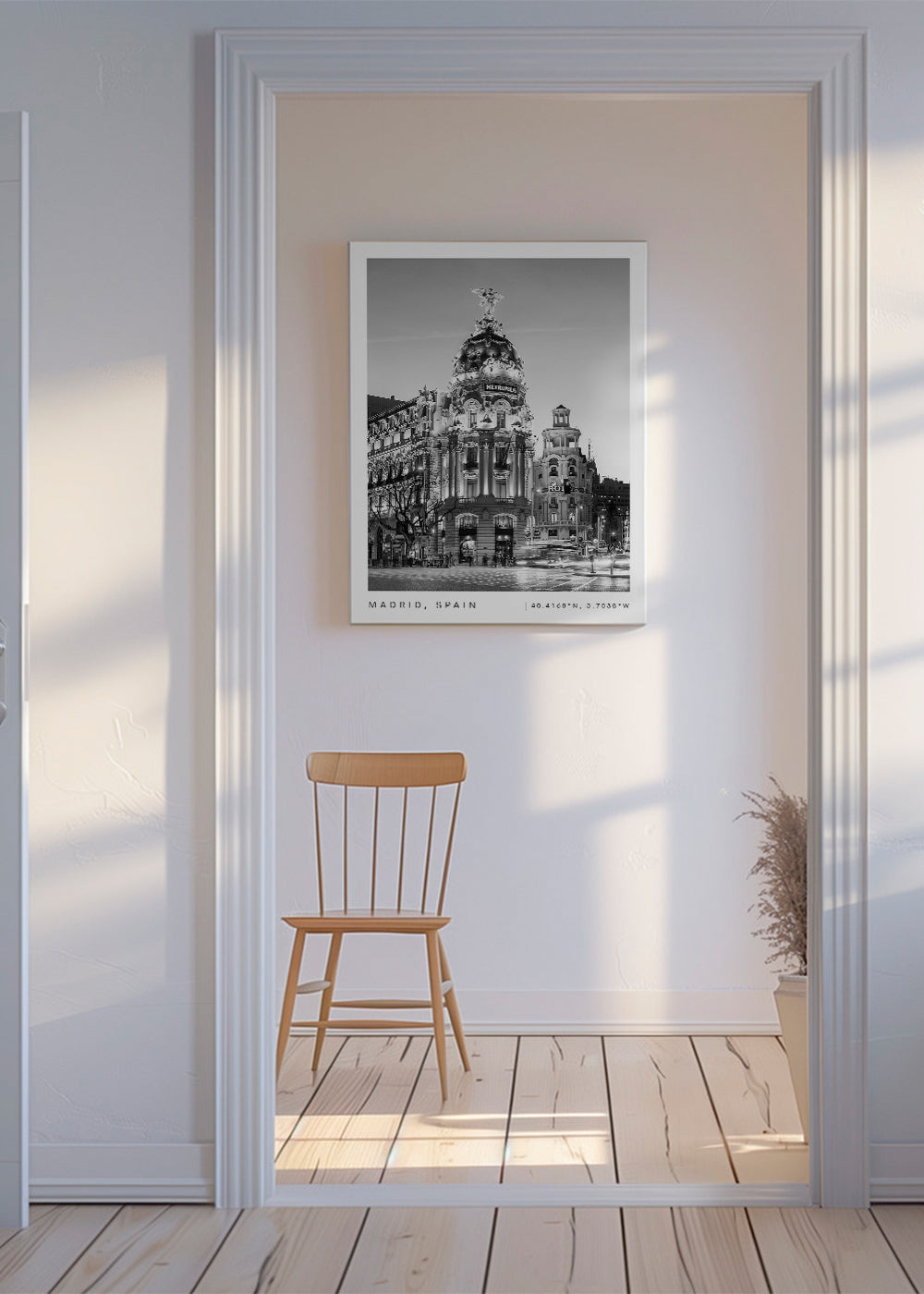 Tous nos cadres sont fabriqués en Espagne. Les cadres blanc, noir et chêne sont en bois d'Ayous, et ceux en chêne sont plaqués en chêne, tandis que les métalliques sont en aluminium.
