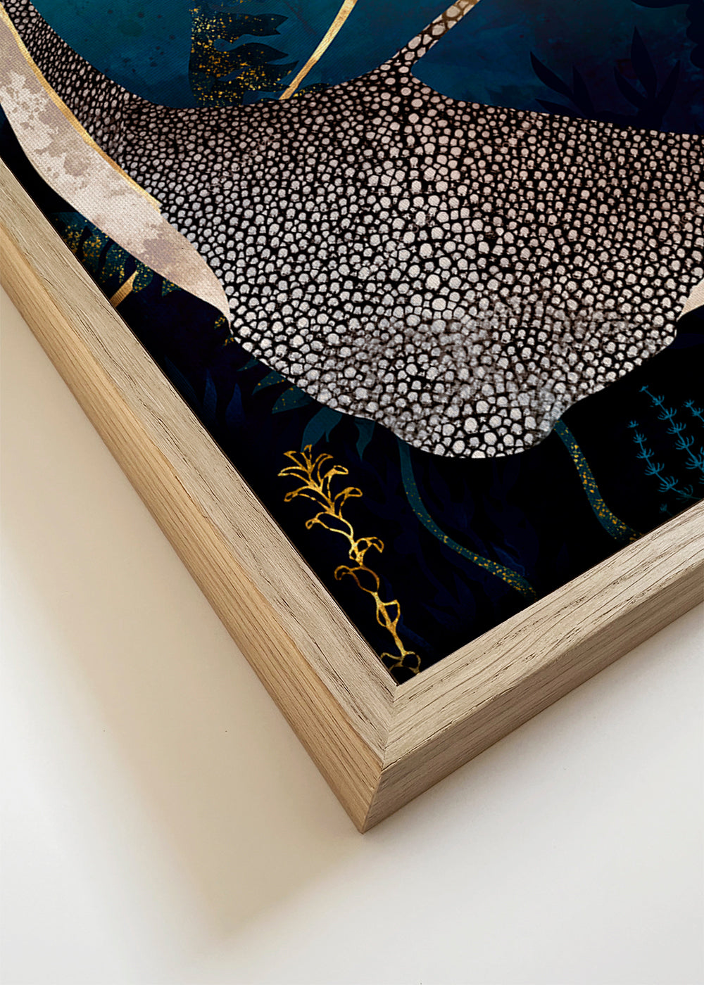 Si vous sélectionnez l'option passe-partout, nous ajouterons le tableau blanc mat au cadre, et nous réduirons le dessin de l'œuvre. Par exemple, si vous sélectionnez un tirage au format 50x70 cm, avec un cadre et un passe-partout couleur chêne, nous réduirons le dessin du tirage au format précédent (40x50cm). Ainsi, il s'adaptera parfaitement à la fenêtre intérieure du passe-partout.