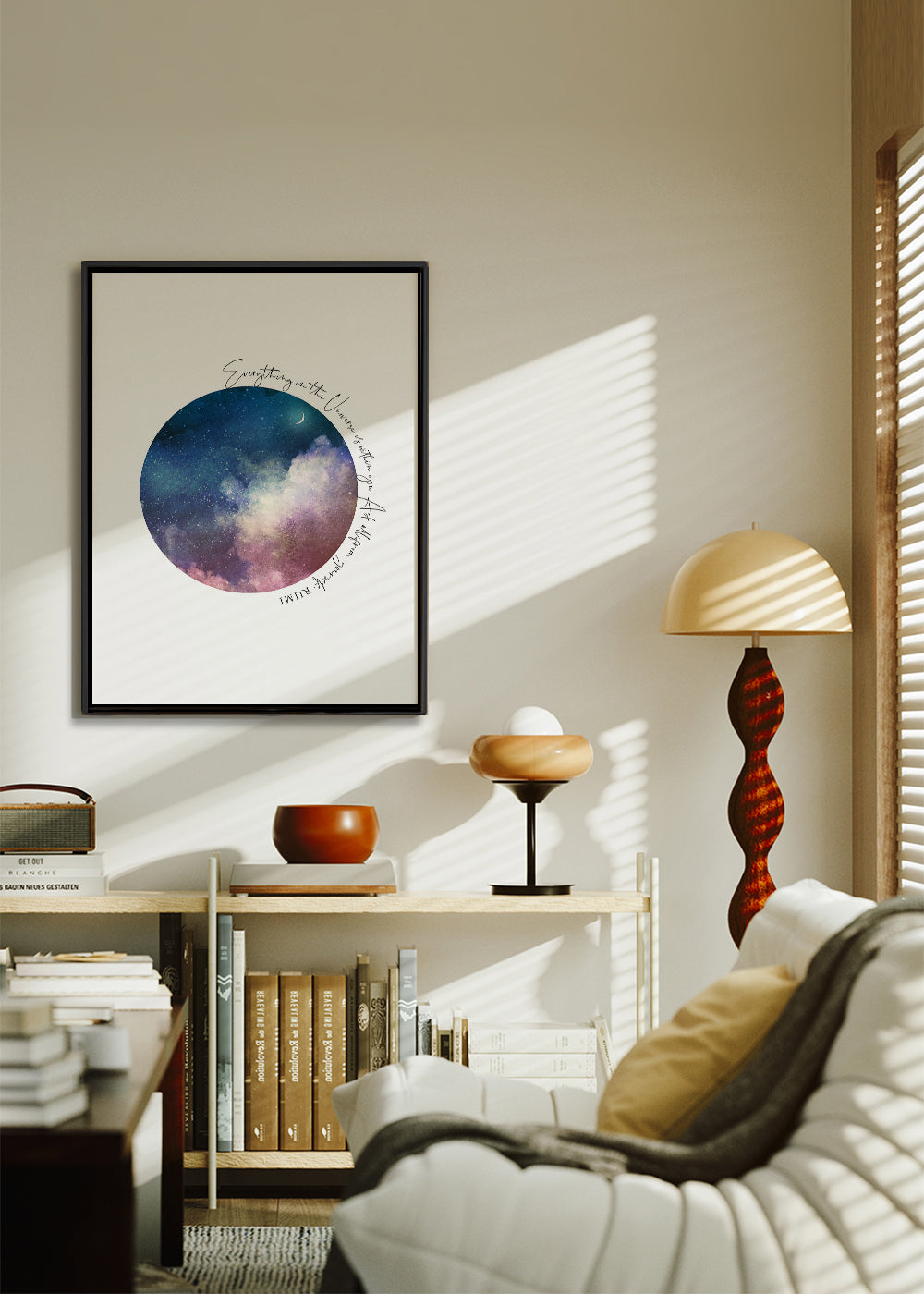 Si vous combinez l'une de nos impressions avec l'un des cadres que nous proposons, vous recevrez les impressions encadrées et prêtes à être accrochées. Si vous achetez l'impression et le cadre séparément, ou si vous souhaitez inclure vos propres impressions, ouvrez les extrémités arrière, retirez la couverture et incluez votre feuille. C'est facile !