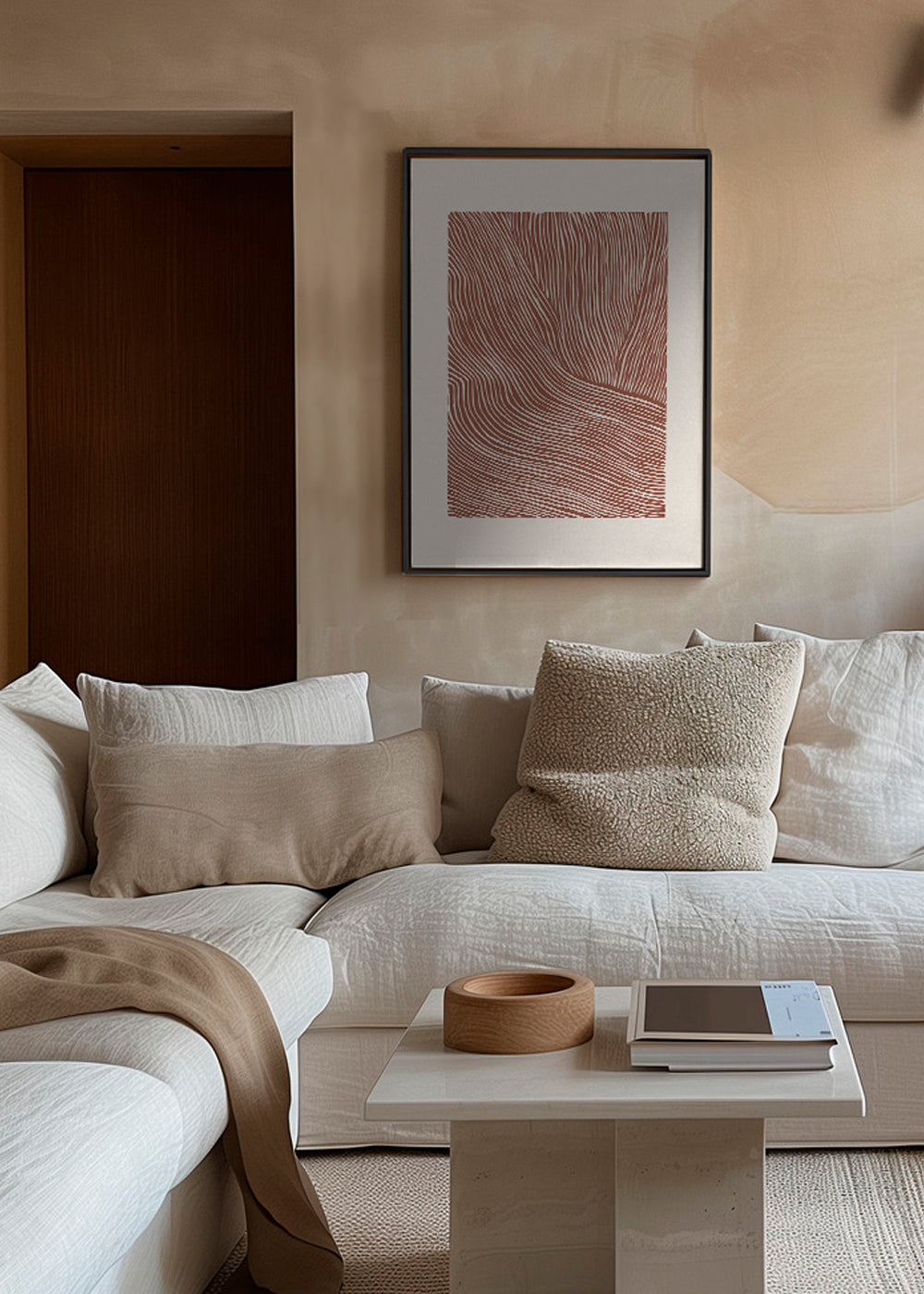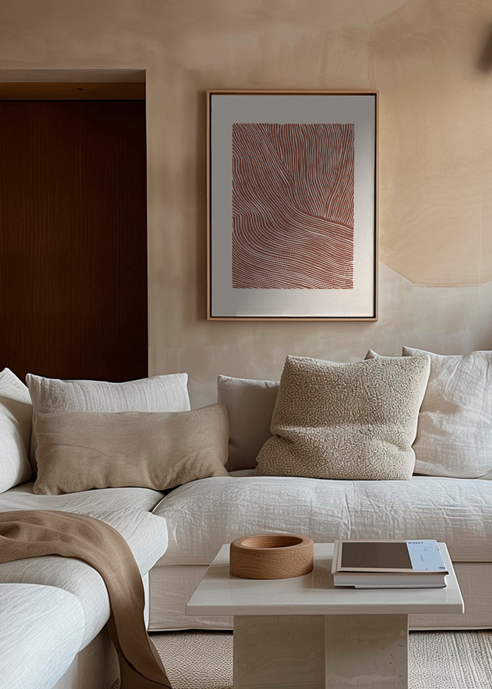Tableau nordique Stripes linocut Nº5 - Terracotta
