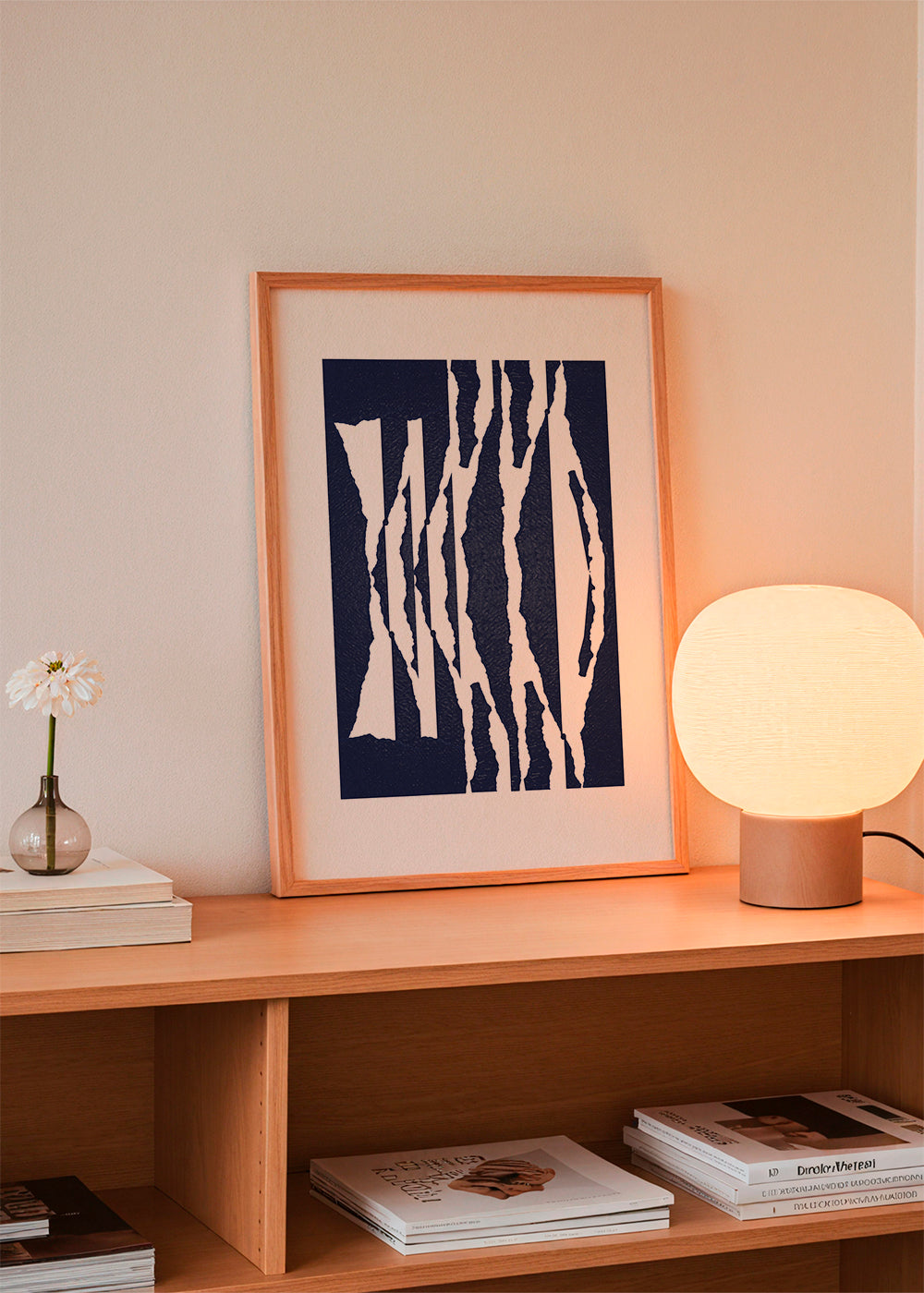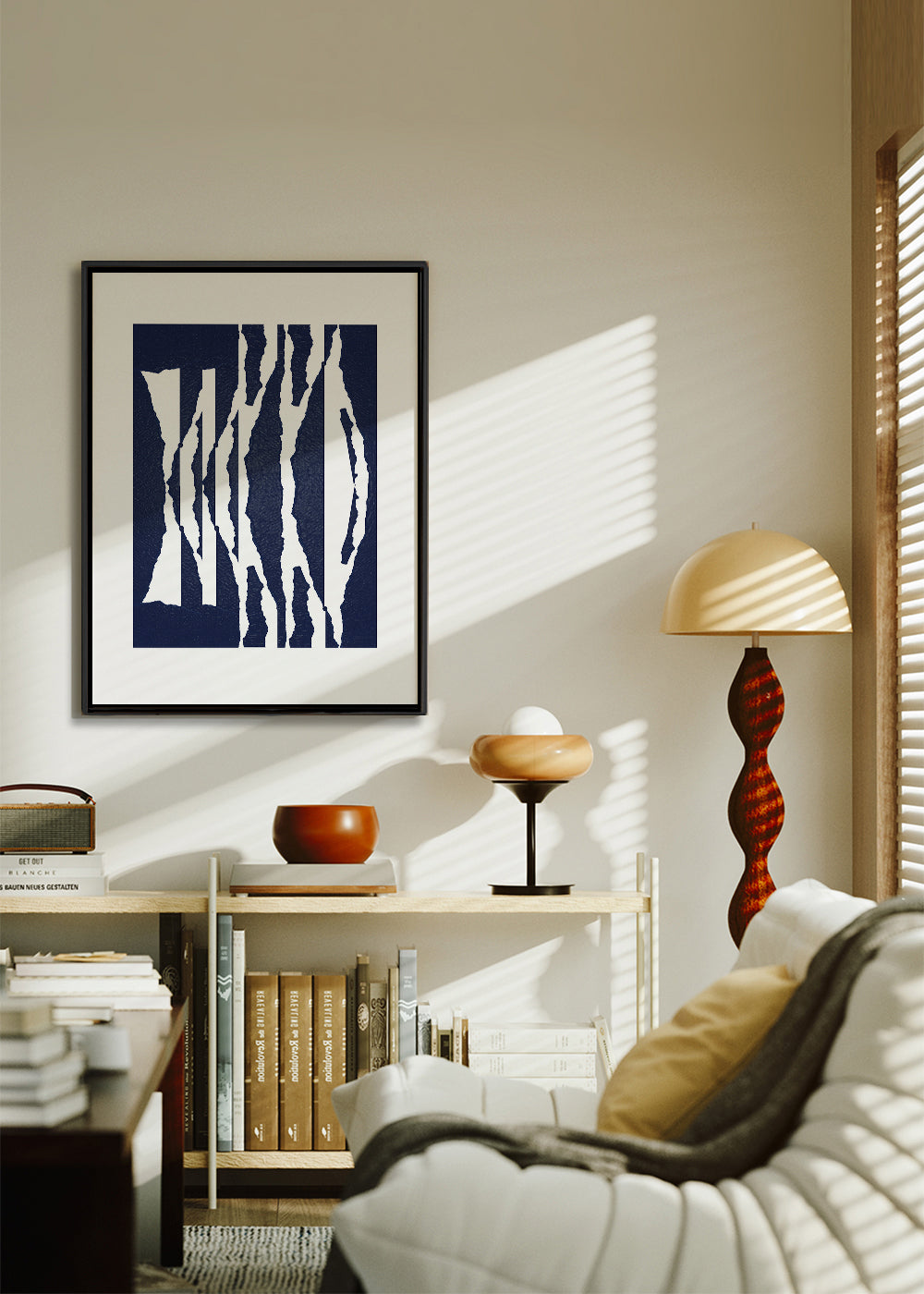 Jolie oeuvre avec l'inspiration dans la collection tableaux abstraits, conçue par Anna Mainz, avec des touches bleus, et pour mettre en position portrait. Les toiles et affiches d'art abstrait renforcent l'unicité des espaces. Donnez vie aux murs de votre maison. Ce modèle comprend une bordure blanche qui ajoute du contraste à l'œuvre.