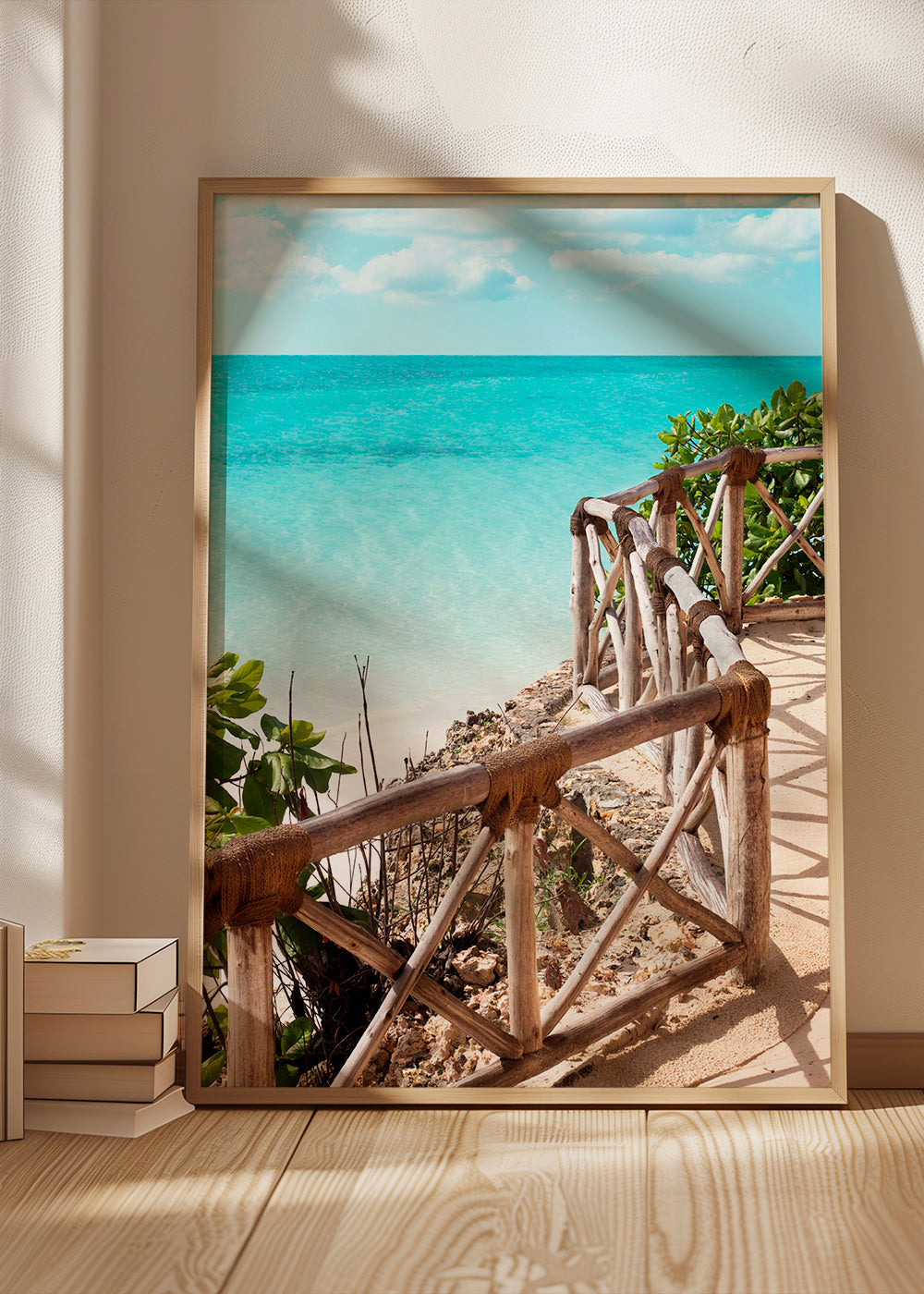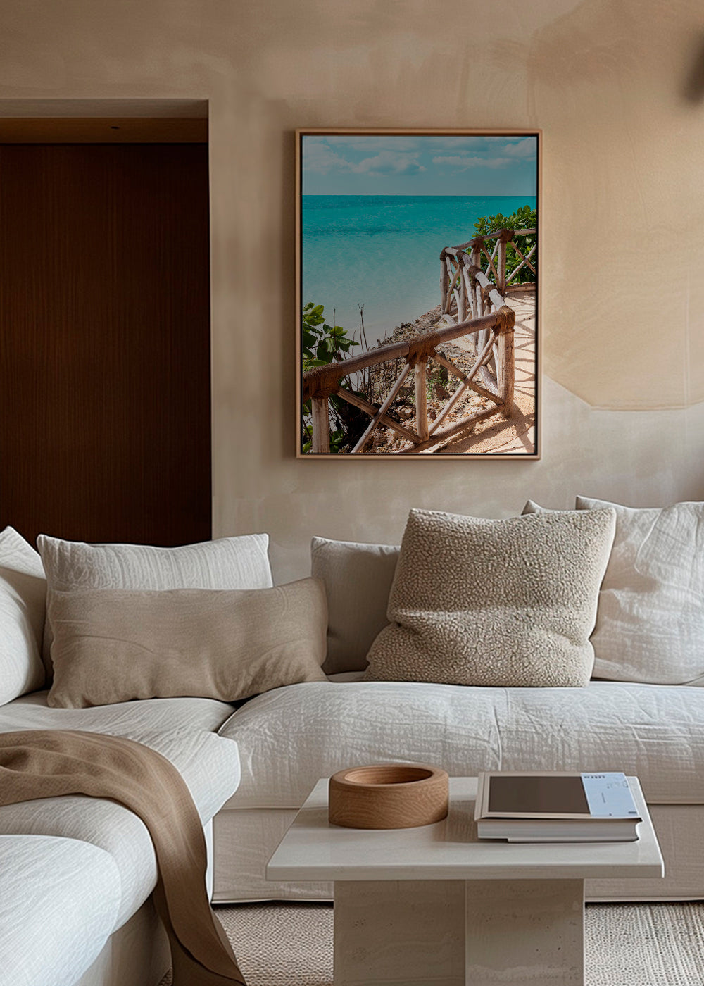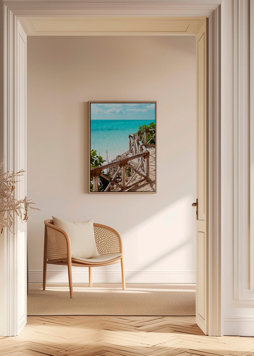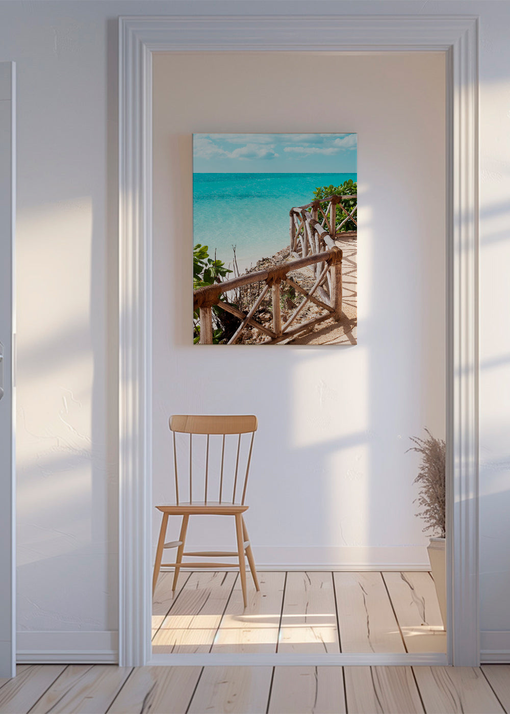 Un tableau de la série tableaux de voyage, créée par Gal Design, avec des tonalités bleus, et en portrait. Le calme et la liberté transmis par les tableaux de paysages sont uniques. Habillez les murs de votre maison.