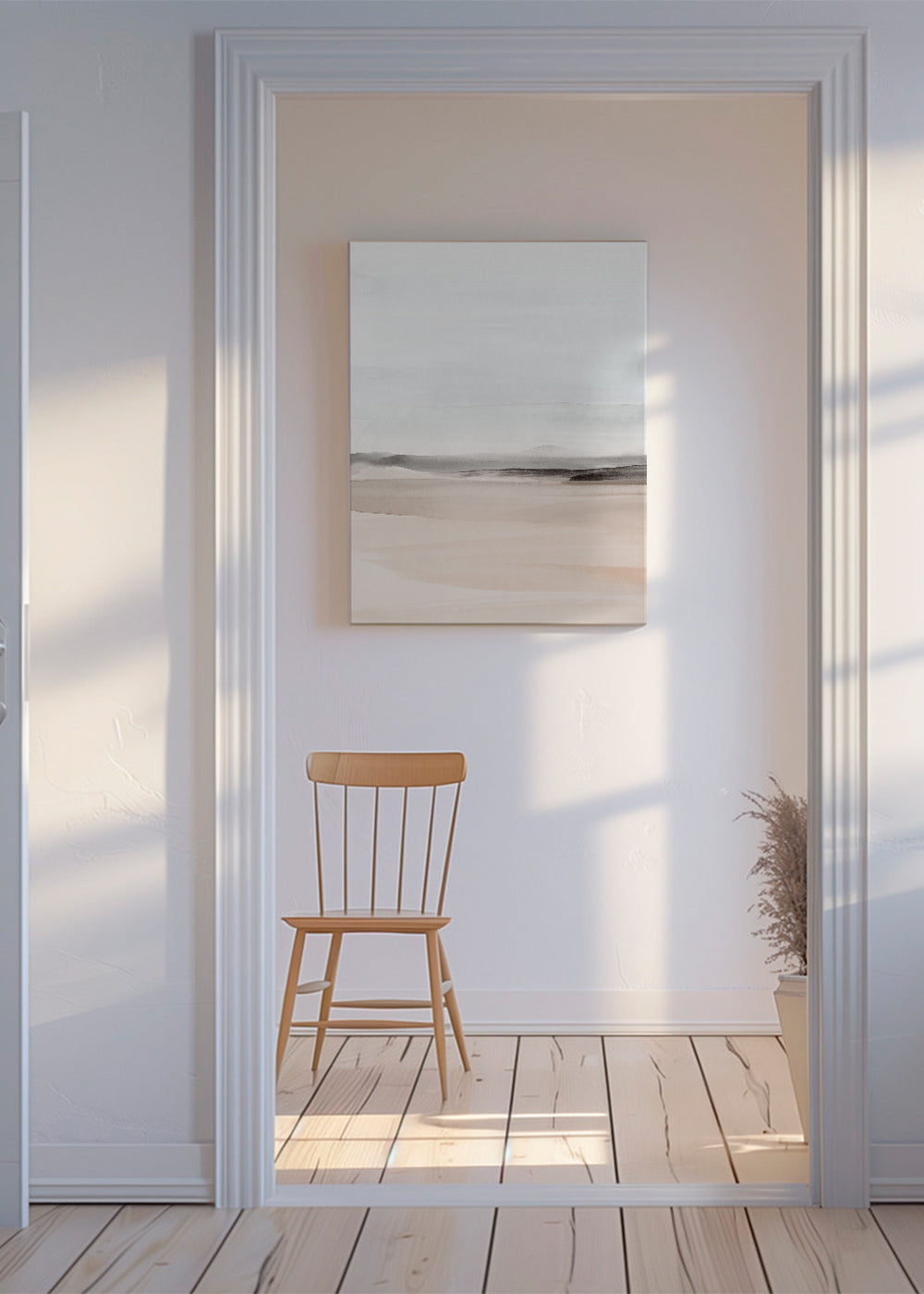 Une oeuvre de la série tableaux aux pinceaux, de la collection de l'artiste Nouveau Prints, en couleurs blancs, et en portrait. La nature est l'une des plus belles œuvres d'art qui existent... vous ne trouvez pas ? Combinez nos tableaux de paysages pour obtenir une décoration pleine de fraîcheur. La touche finale que vous recherchiez.