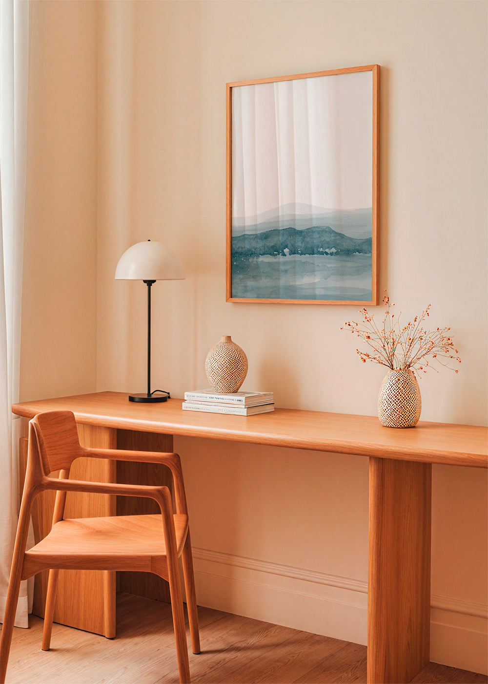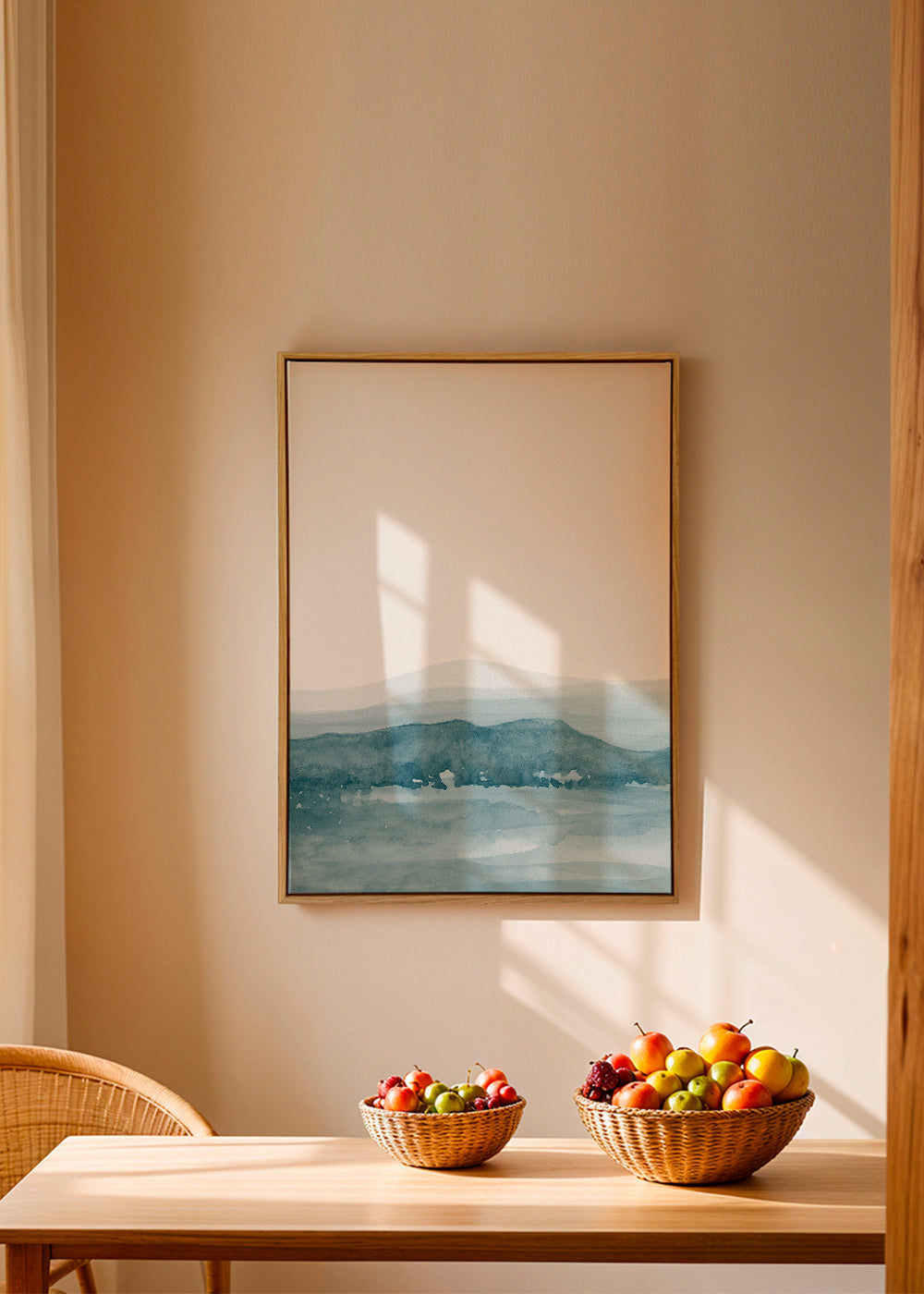 Un poster du style de nos tableaux aux pinceaux, faite par Nouveau Prints, avec des tonalités bleus, et dans une orientation portrait. Le calme et la liberté transmis par les tableaux de paysages sont uniques. Le design de votre maison est entre vos mains.