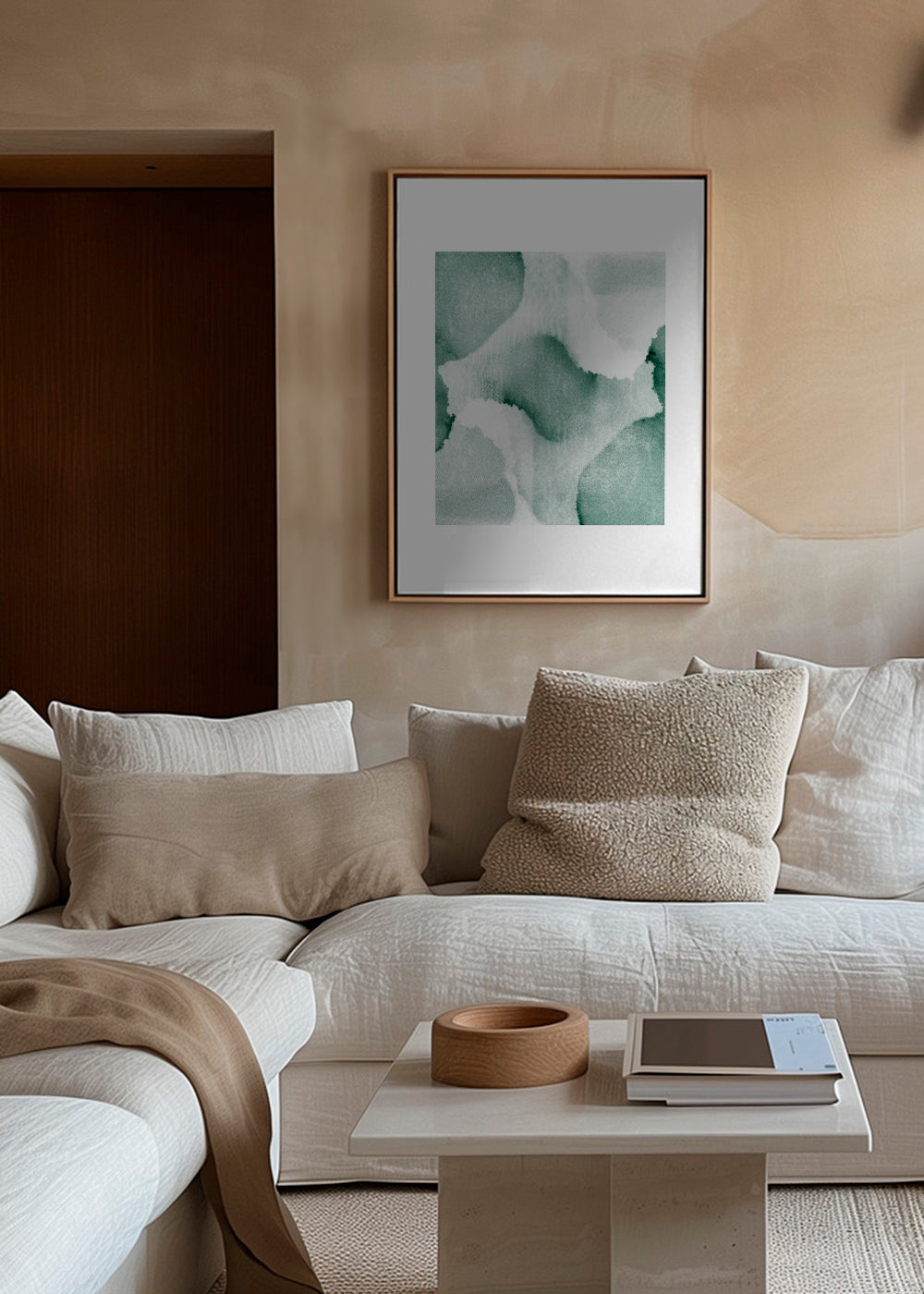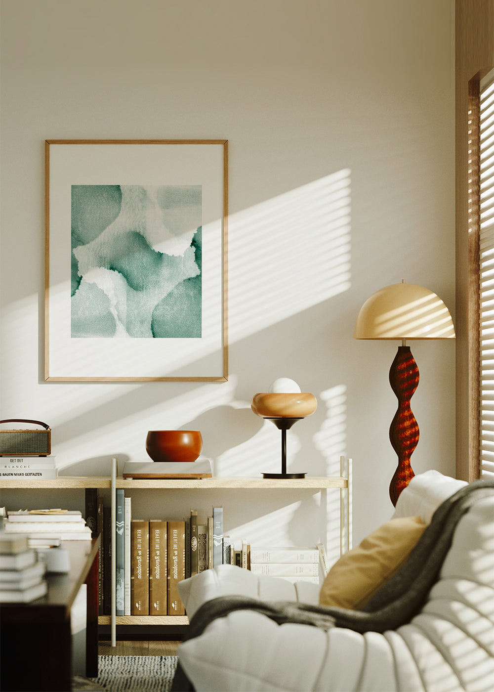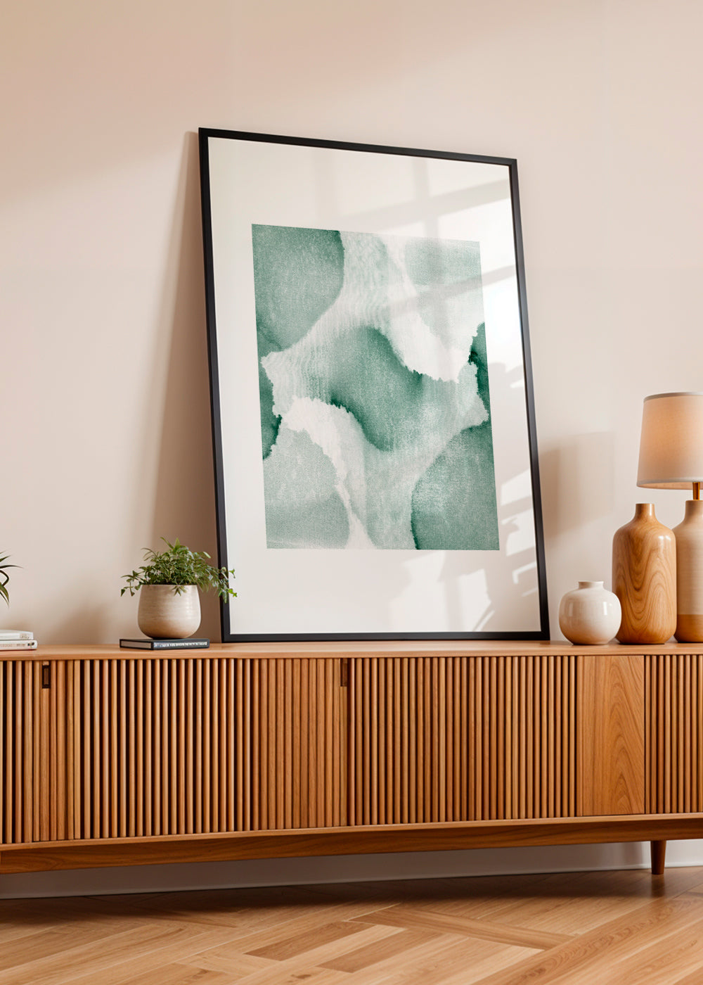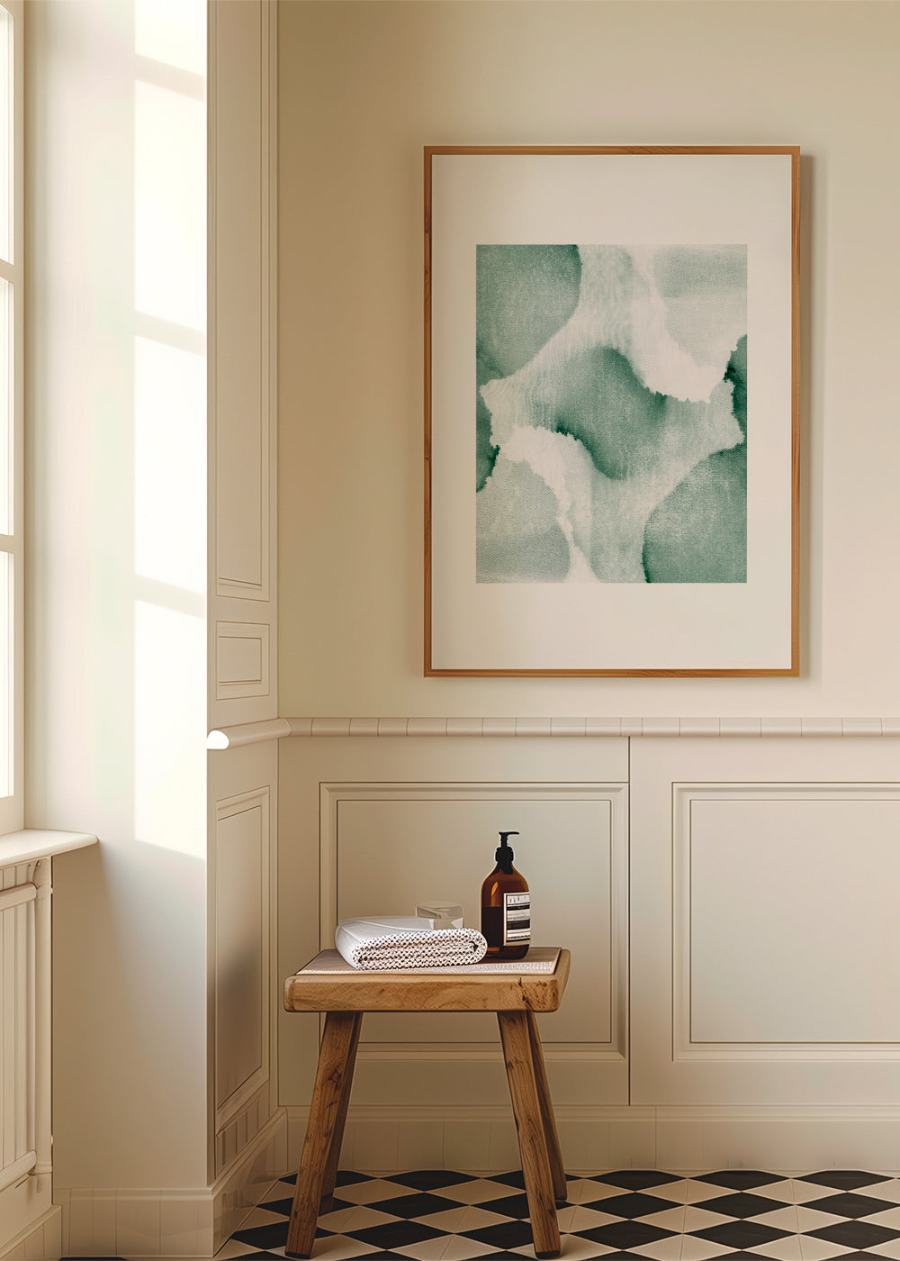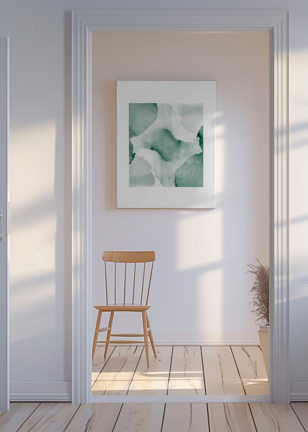 Un poster de la collection tableaux aux pinceaux, de Anna Mainz, avec les couleurs verts, et pour mettre en position portrait. Les tableaux abstraits modernisent n’importe quel espace et donnent un aspect super chic à la décoration. Oubliez les murs ennuyeux et fades. Ce modèle comprend une bordure blanche qui ajoute du contraste à l'œuvre.