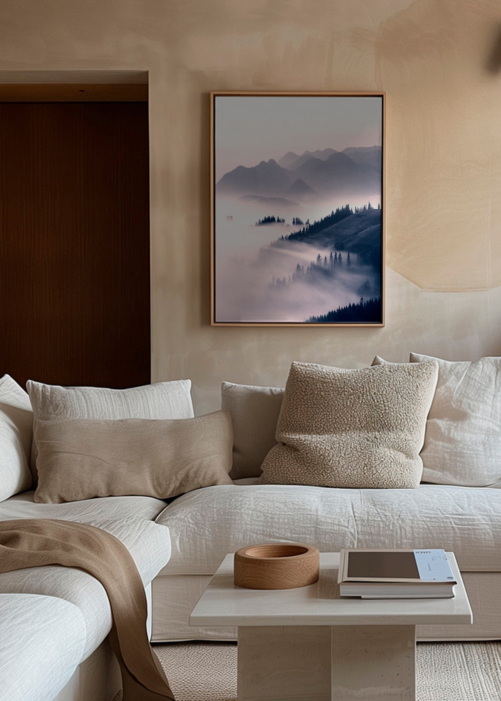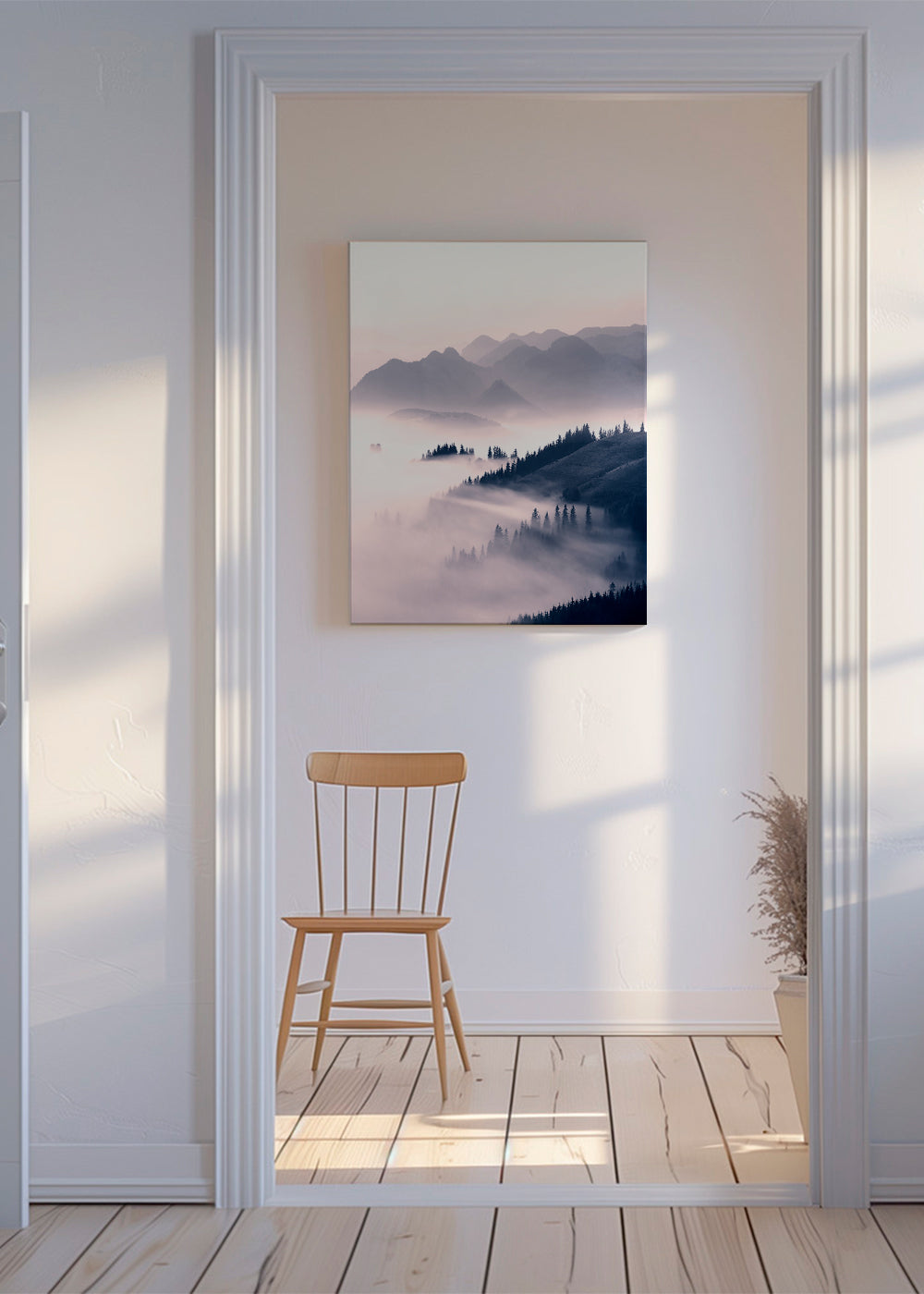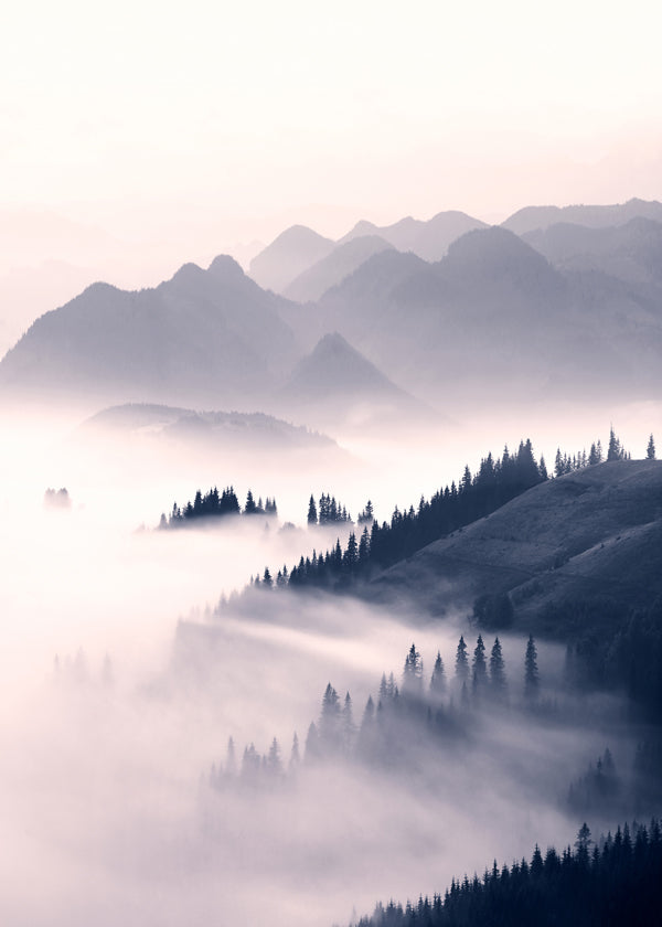 Tableau d'une photo des montagnes avec le brouillard