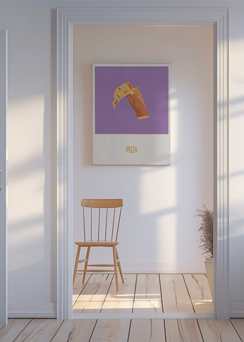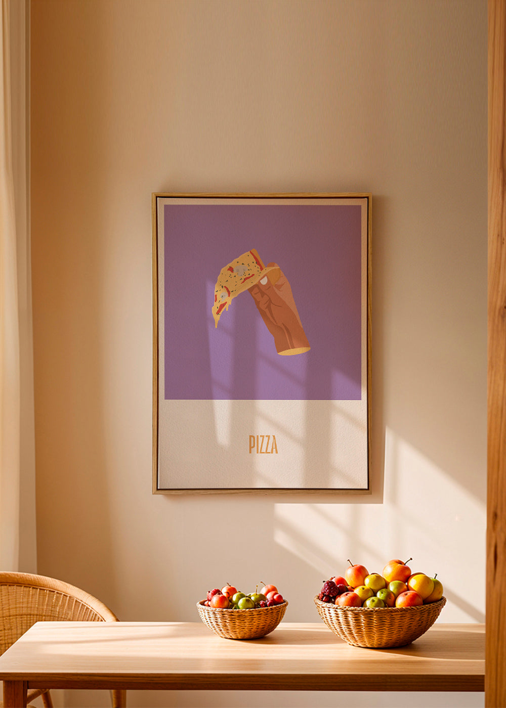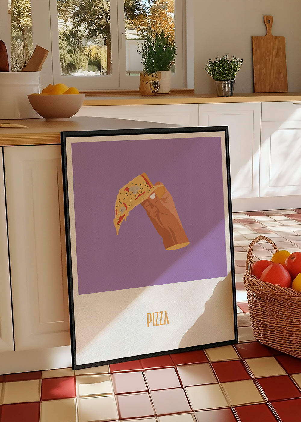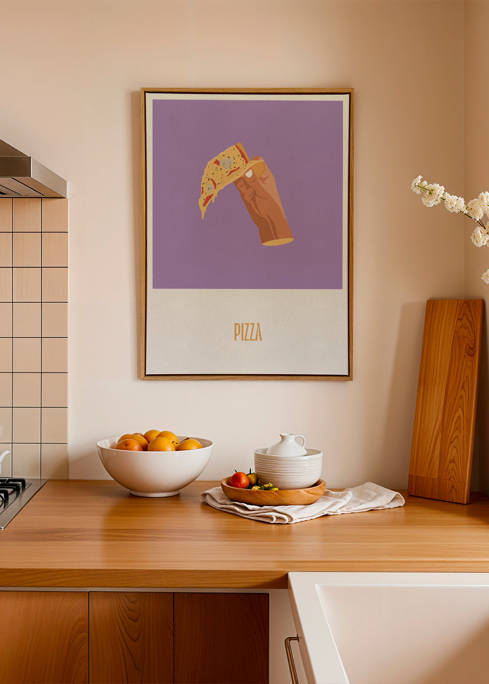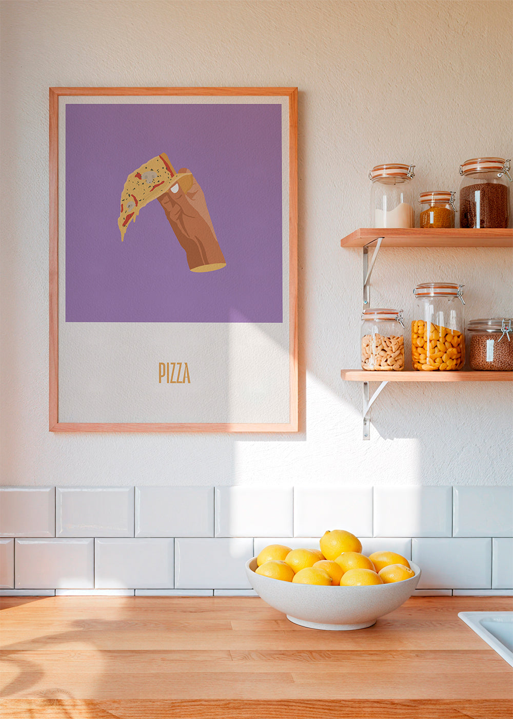 Un poster avec l'inspiration dans la collection affiches pizza, de l'artiste Nerea Ramírez, avec des touches violets, et dans une orientation vers un portrait. Un modèle pour les plus jolies cuisines. Décorez votre cuisine avec des tableaux Un mur vide est un mur triste, mais quelques photos vous apporteront un sourire.