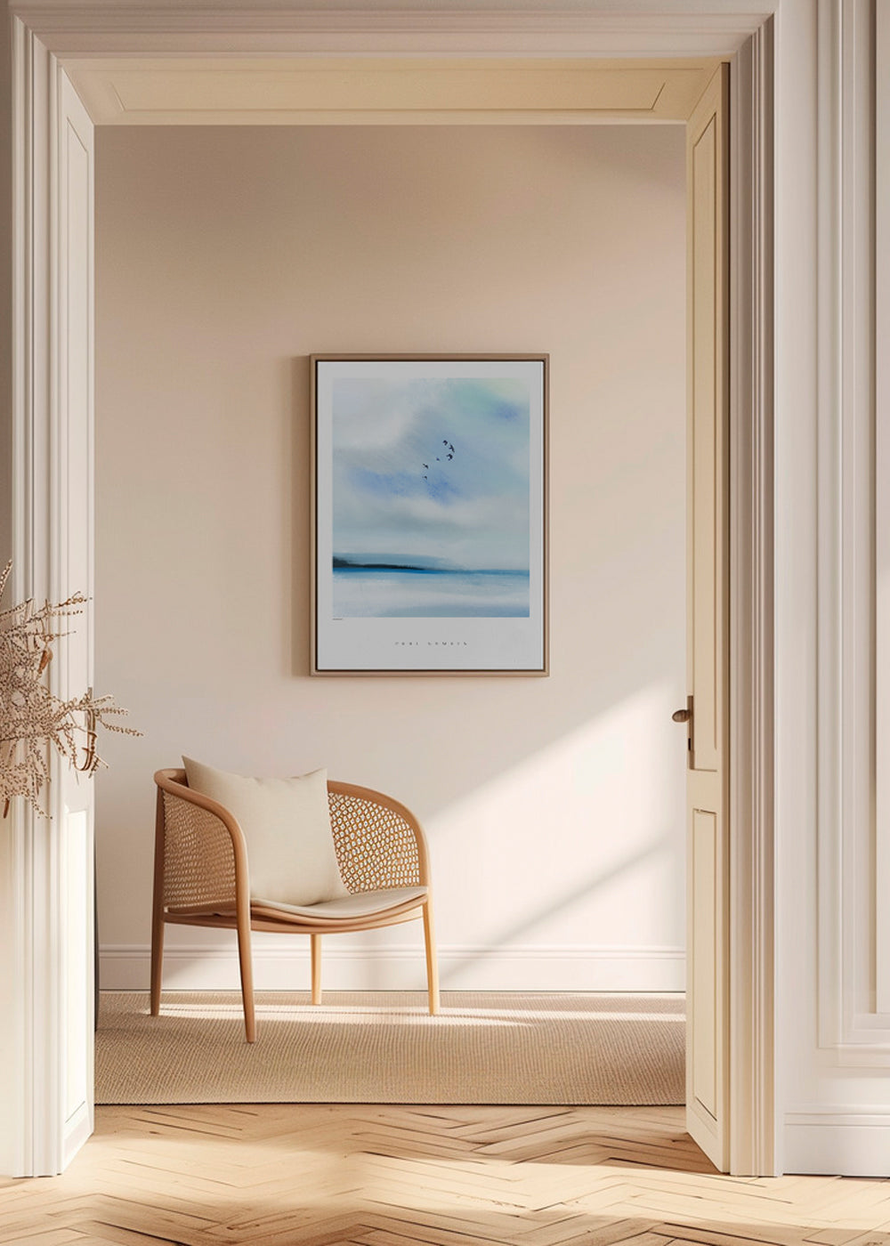 Jolie oeuvre du style de nos tableaux plage mer, original de Mercedes Lopez Charro, dans des tons bleus, et dans une orientation vers un portrait. Les tableaux de paysages sont spectaculaires, combinez-les avec des textes et des phrases pour créer d’incroyables compositions murales. Créez de petits espaces remplis d'art.