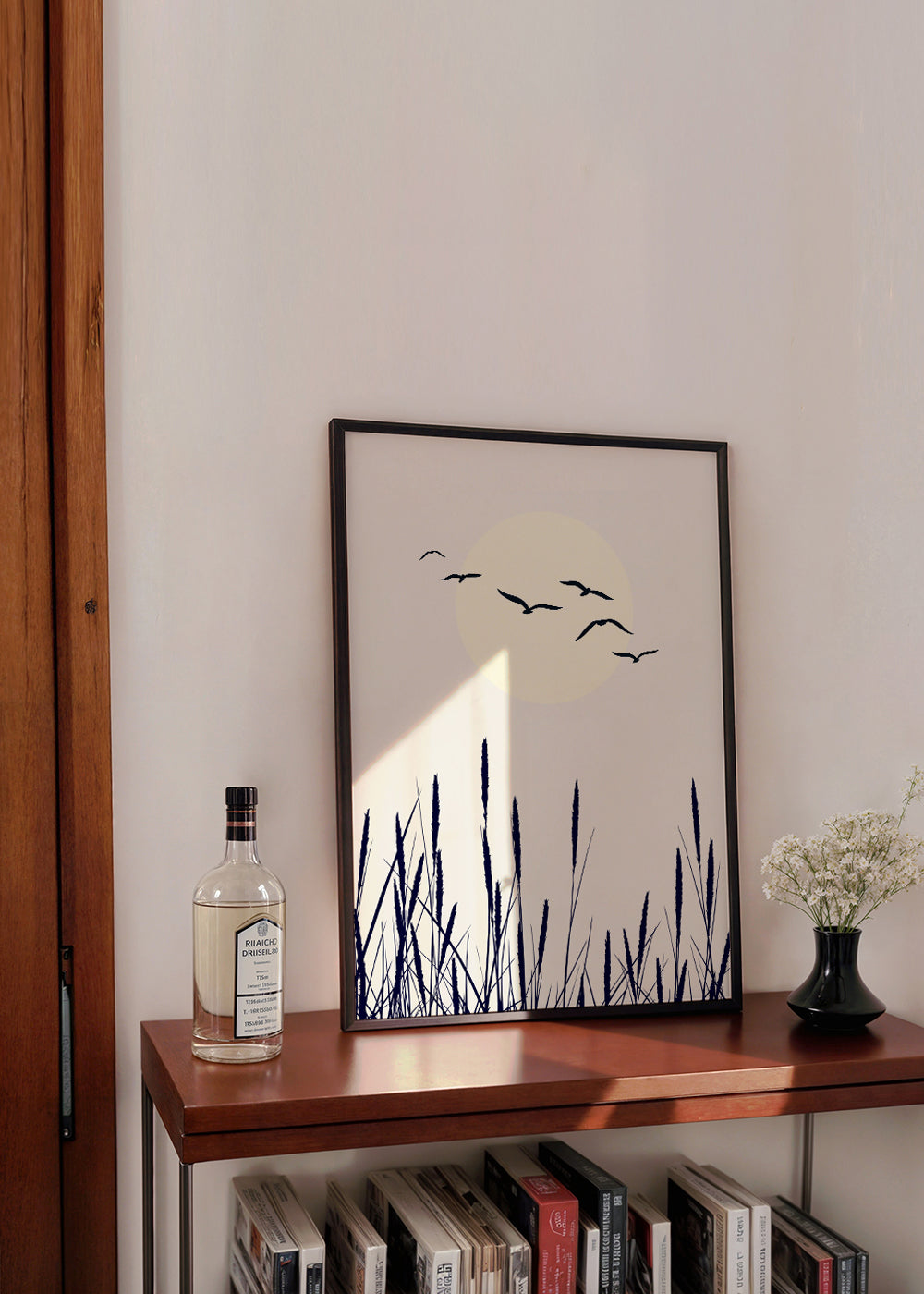 Une oeuvre de la collection tableaux des levers et couchers du soleil, de la collection de l'artiste KUBISTIKA, en couleurs bleus, et en position portrait. Les tableaux de paysages sont spectaculaires, combinez-les avec des textes et des phrases pour créer d’incroyables compositions murales. Laissez vos murs raconter des histoires.
