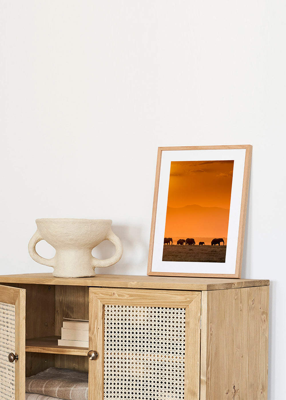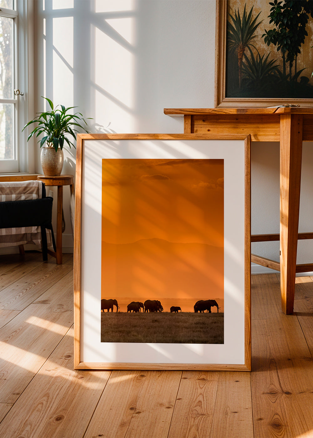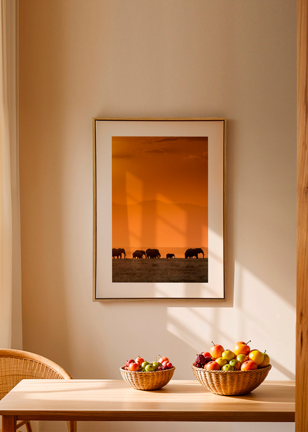 Un affiche appartenant à la catégorie posters éléphant, en couleurs jaunes, et pour mettre en orientation portrait. Décorer avec des tableaux d'animaux est un moyen de transmettre de l'énergie grâce à vos murs. Laissez l'art inonder votre maison. La marge blanche qui entoure l'image renforce l'expressivité de l'œuvre.