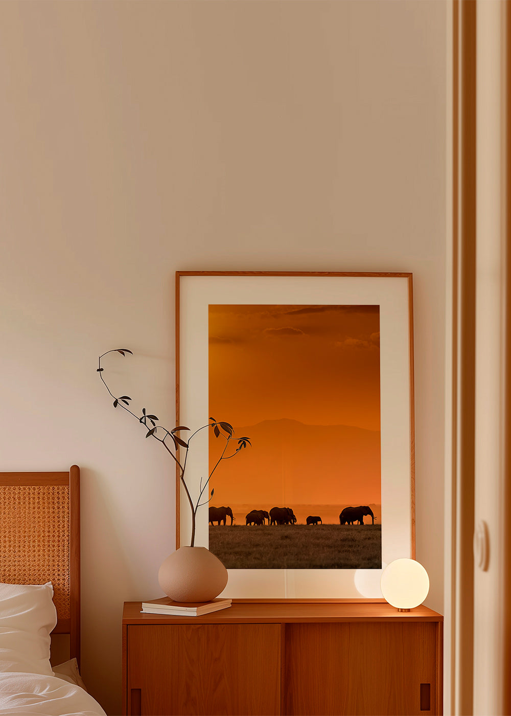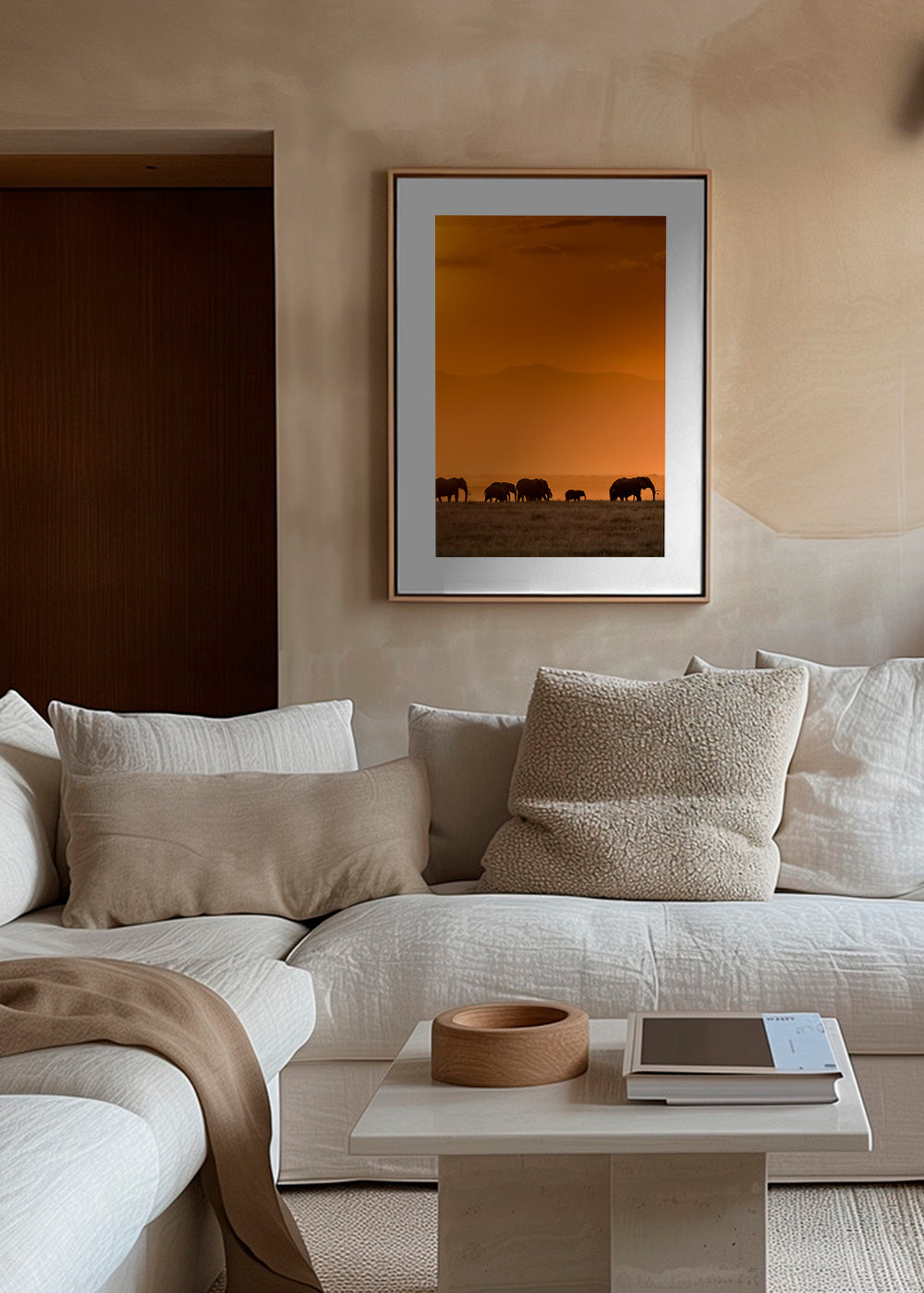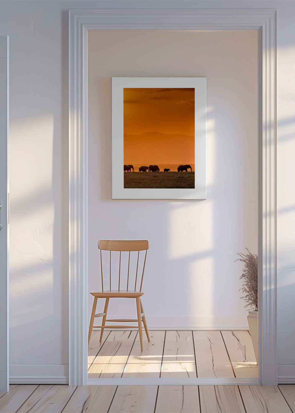 Un affiche appartenant à la catégorie posters éléphant, en couleurs jaunes, et pour mettre en orientation portrait. Décorer avec des tableaux d'animaux est un moyen de transmettre de l'énergie grâce à vos murs. Laissez l'art inonder votre maison. La marge blanche qui entoure l'image renforce l'expressivité de l'œuvre.