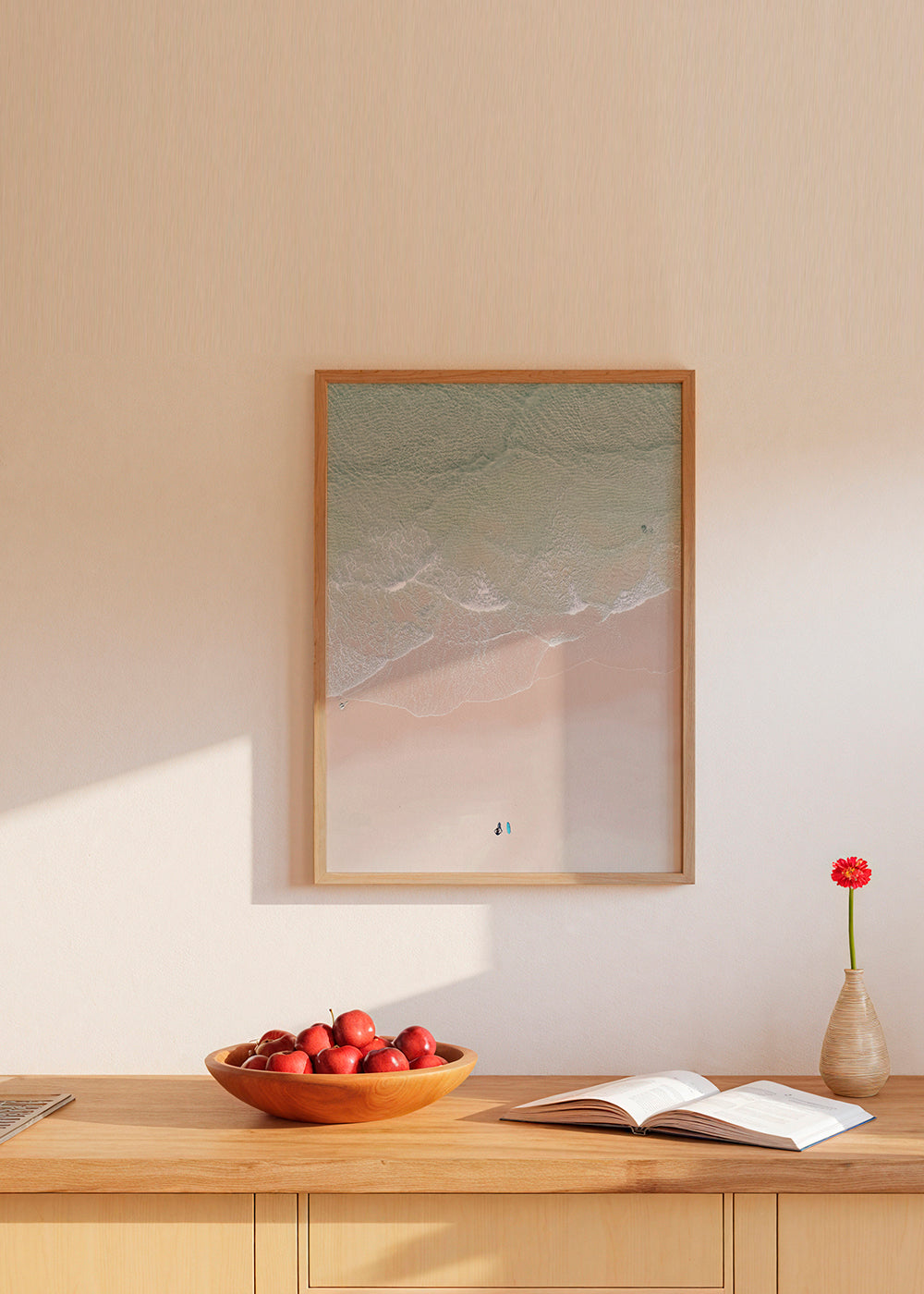 Si vous sélectionnez l'option passe-partout, nous ajouterons le tableau blanc mat au cadre, et nous réduirons le dessin de l'œuvre. Par exemple, si vous sélectionnez un tirage au format 50x70 cm, avec un cadre et un passe-partout couleur chêne, nous réduirons le dessin du tirage au format précédent (40x50cm). Ainsi, il s'adaptera parfaitement à la fenêtre intérieure du passe-partout.