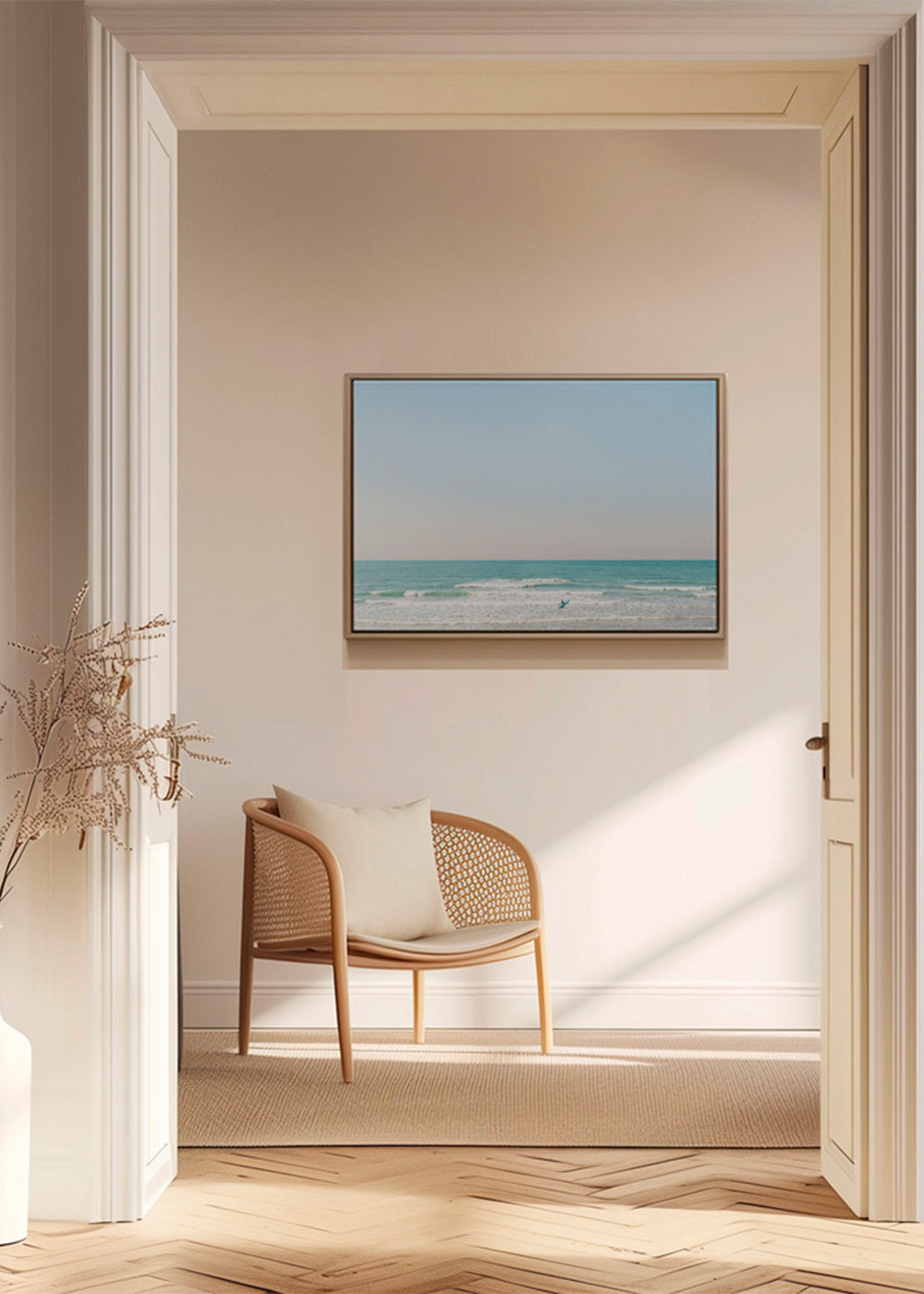 Ce modèle de notre collection tableaux plage mer, créée par Cordula Schaefer, avec des touches bleus, et pour mettre en position format paysage. Le calme et la liberté transmis par les tableaux de paysages sont uniques. Le design de votre maison est entre vos mains.