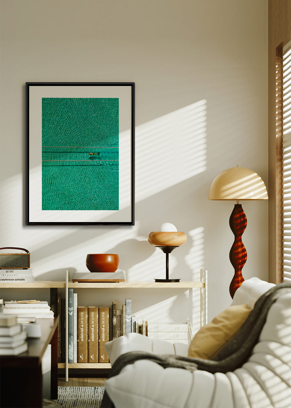 Si vous sélectionnez l'option passe-partout, nous ajouterons le tableau blanc mat au cadre, et nous réduirons le dessin de l'œuvre. Par exemple, si vous sélectionnez un tirage au format 50x70 cm, avec un cadre et un passe-partout couleur chêne, nous réduirons le dessin du tirage au format précédent (40x50cm). Ainsi, il s'adaptera parfaitement à la fenêtre intérieure du passe-partout.