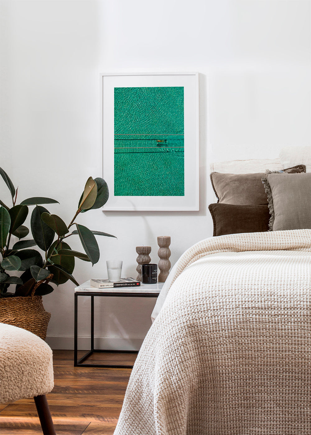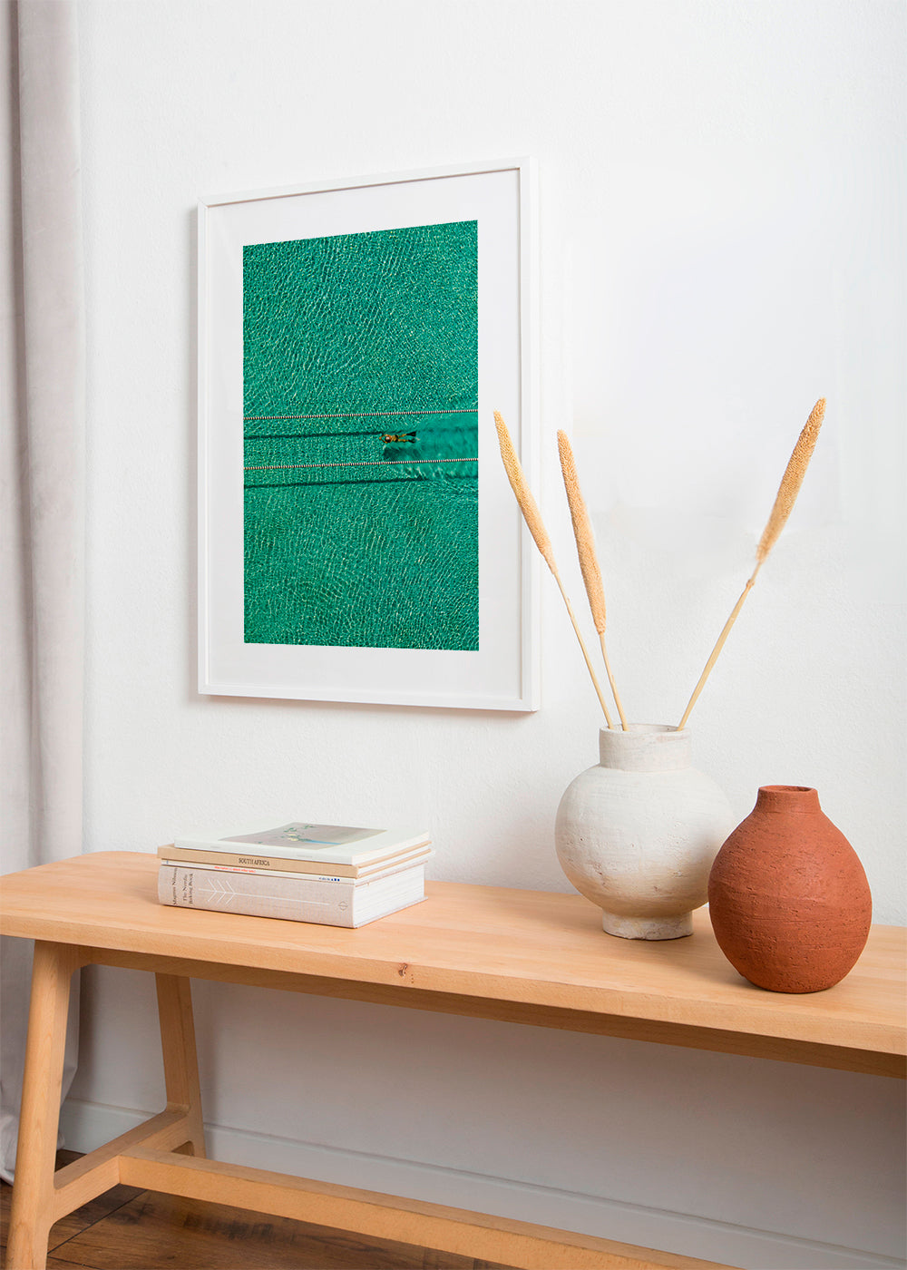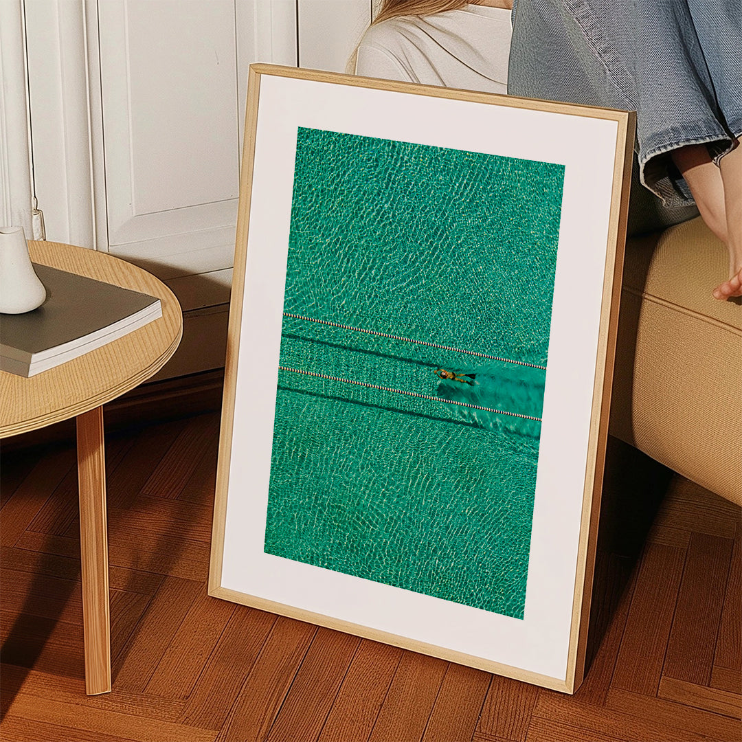 Beau affiche du style de nos affiches natation, avec des tonalités bleus, et en portrait. Une jolie photo peut faire la différence entre un espace ennuyeux et un espace original. L'ajout de photographies artistiques à la décoration est une option qui ne manque jamais. Élégance inspirée par l'art. La marge blanche qui entoure l'image renforce l'expressivité de l'œuvre.