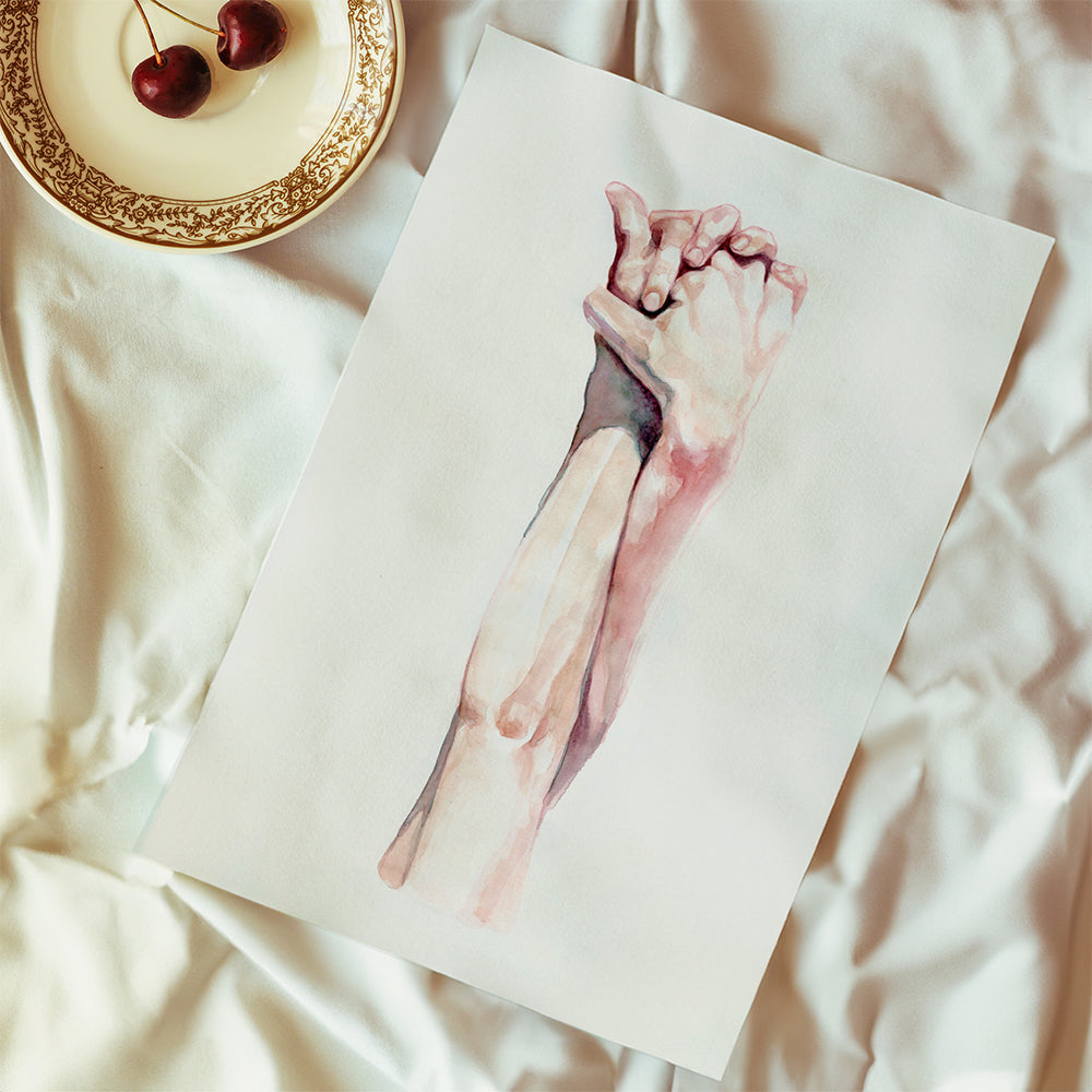 Beau modèle de notre collection tableaux de mains, conçue par Sophia Novosel, en couleurs roses, et en portrait. Les tableaux avec illustrations donnent une touche originale à la décoration de la maison. Faites de votre maison un lieu plein de style.