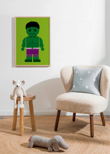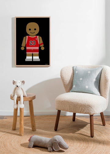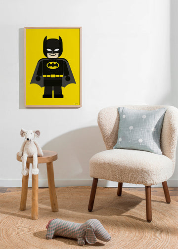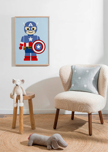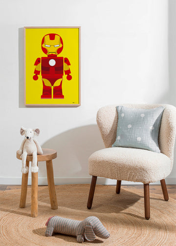 Jolie pièce du style de nos tableaux super-héros, de l'artiste Rafa Gomes, avec des touches rouges, et dans une orientation vers un portrait. Cette œuvre est idéale pour une pièce décorée avec des tableaux d'enfants . Art pur et design.
