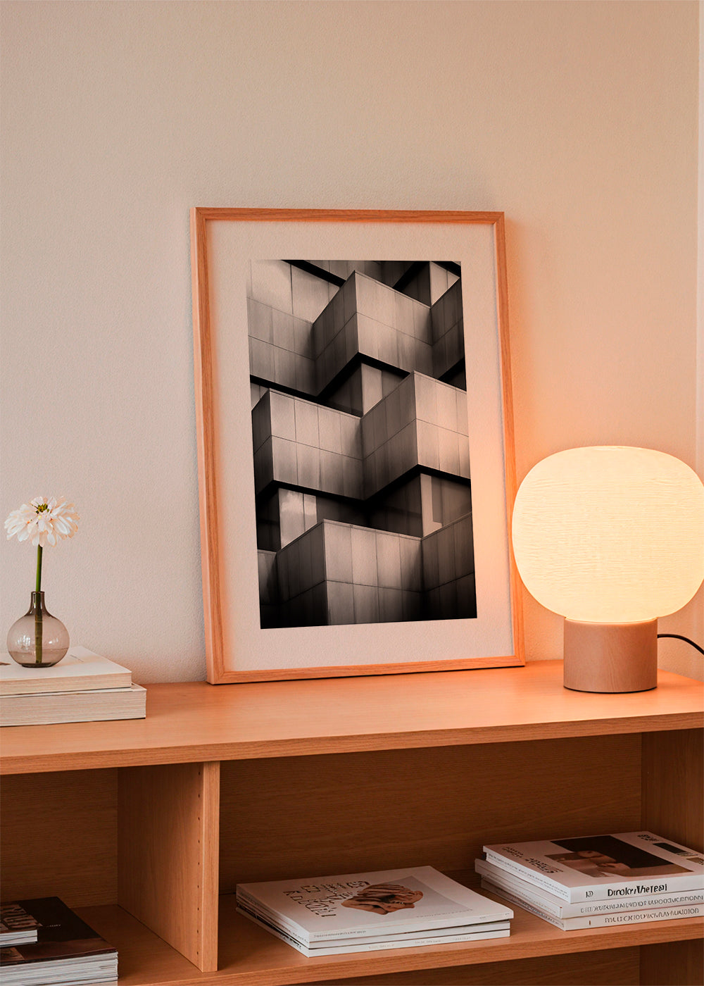 Ce affiche de notre répertoire tableaux d'architecture, avec des nuances monochromes, et pour mettre en position portrait. Les photos à encadrer aident à moderniser l'espace de la maison. Laissez vos murs raconter des histoires. La marge blanche qui entoure l'image renforce l'expressivité de l'œuvre.