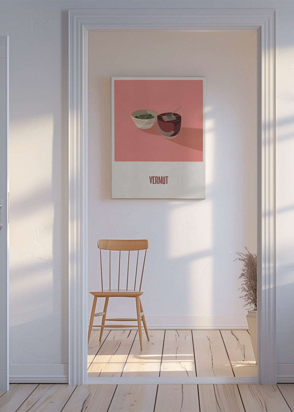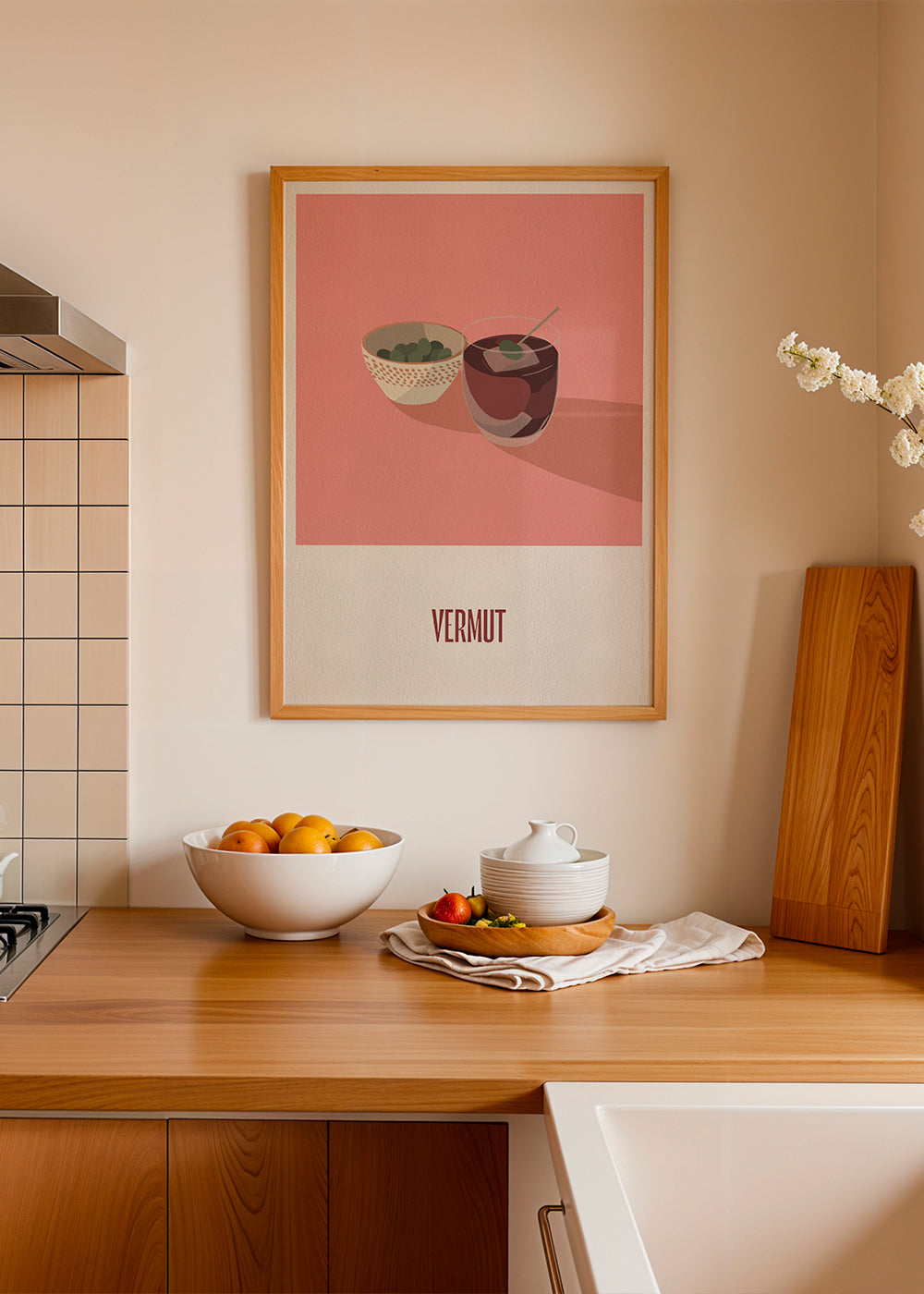 Un poster de notre collection affiches cocktails, conçue par Nerea Ramírez, avec les couleurs orangés, et en portrait. Les tableaux de cuisine sont un élément décoratif parfait pour rendre cet espace plus accueillant. Donnez une touche artistique à votre décoration.