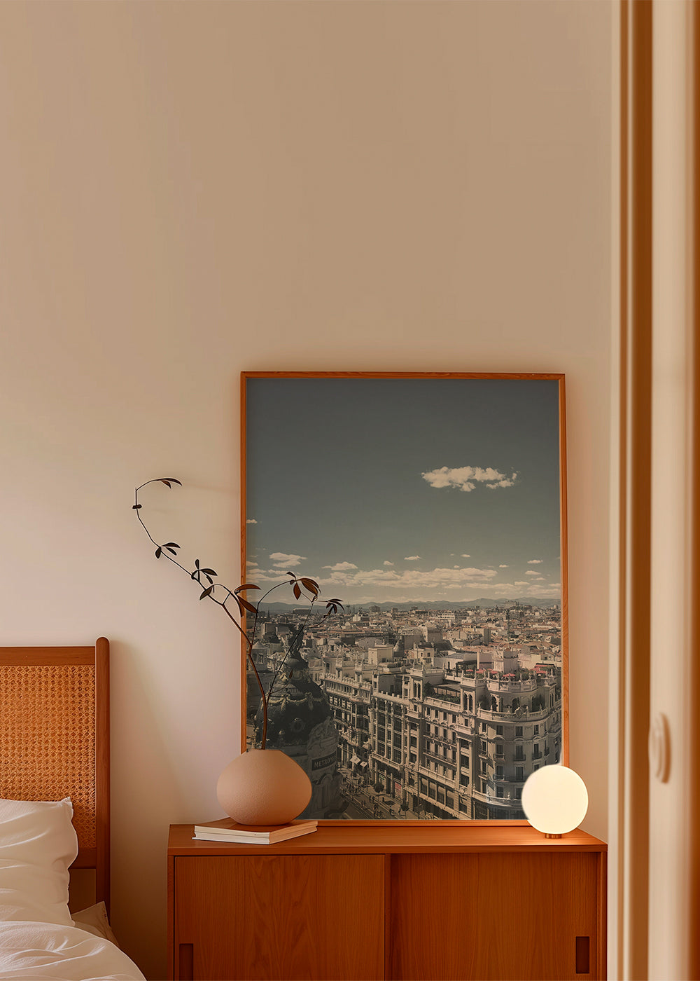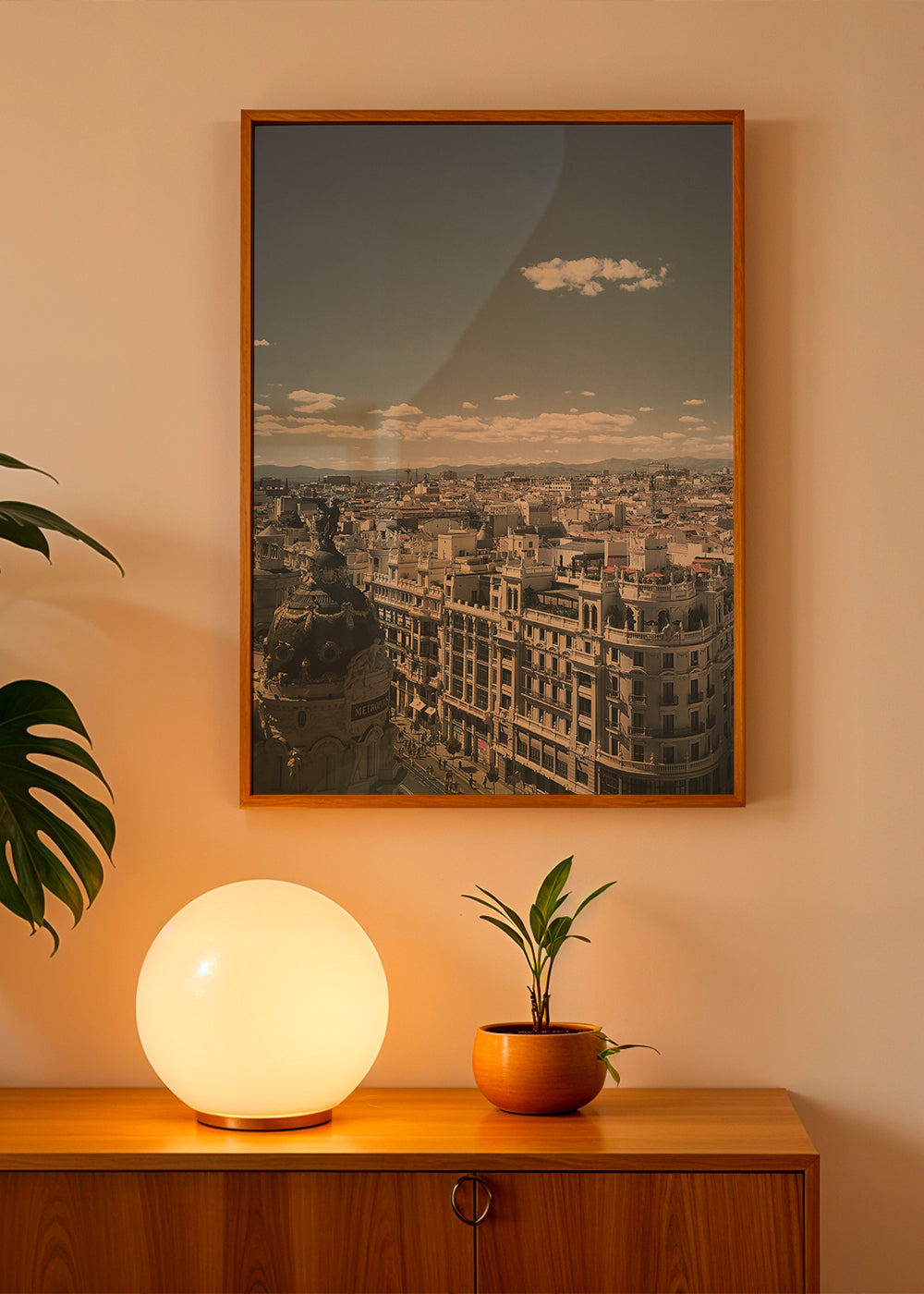 Tous nos cadres sont fabriqués en Espagne. Les cadres blanc, noir et chêne sont en bois d'Ayous, et ceux en chêne sont plaqués en chêne, tandis que les métalliques sont en aluminium.