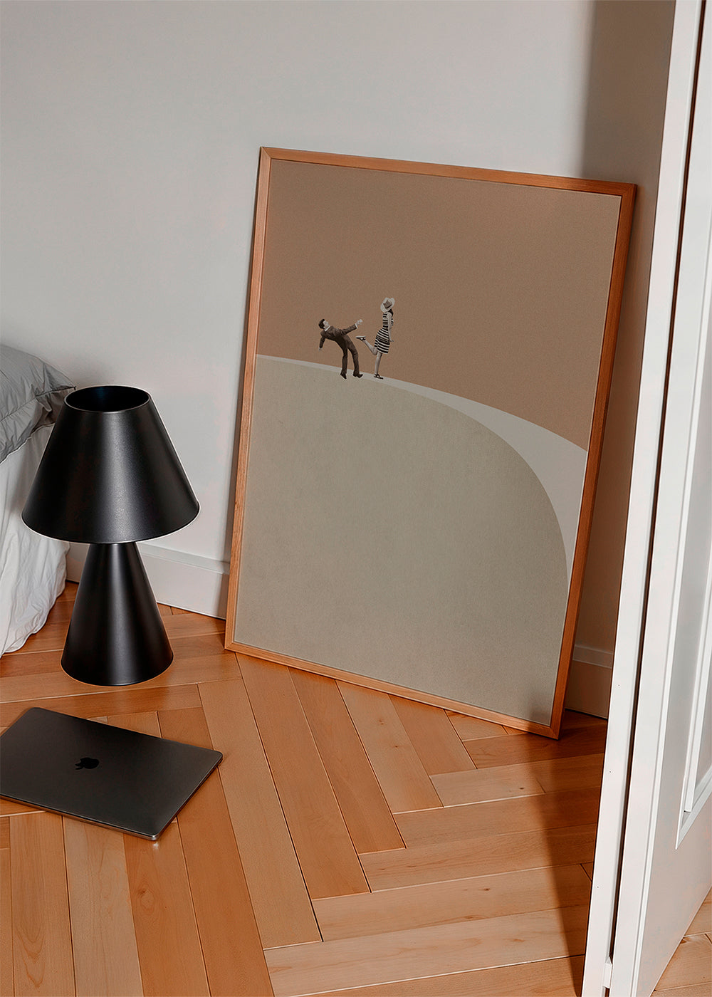 Si vous sélectionnez l'option passe-partout, nous ajouterons le tableau blanc mat au cadre, et nous réduirons le dessin de l'œuvre. Par exemple, si vous sélectionnez un tirage au format 50x70 cm, avec un cadre et un passe-partout couleur chêne, nous réduirons le dessin du tirage au format précédent (40x50cm). Ainsi, il s'adaptera parfaitement à la fenêtre intérieure du passe-partout.