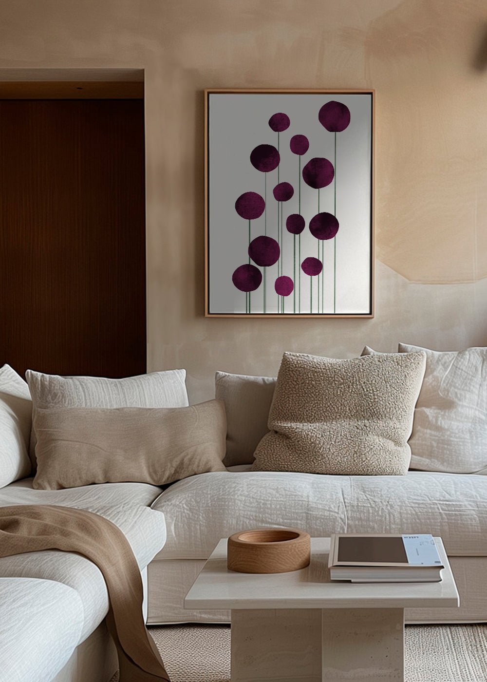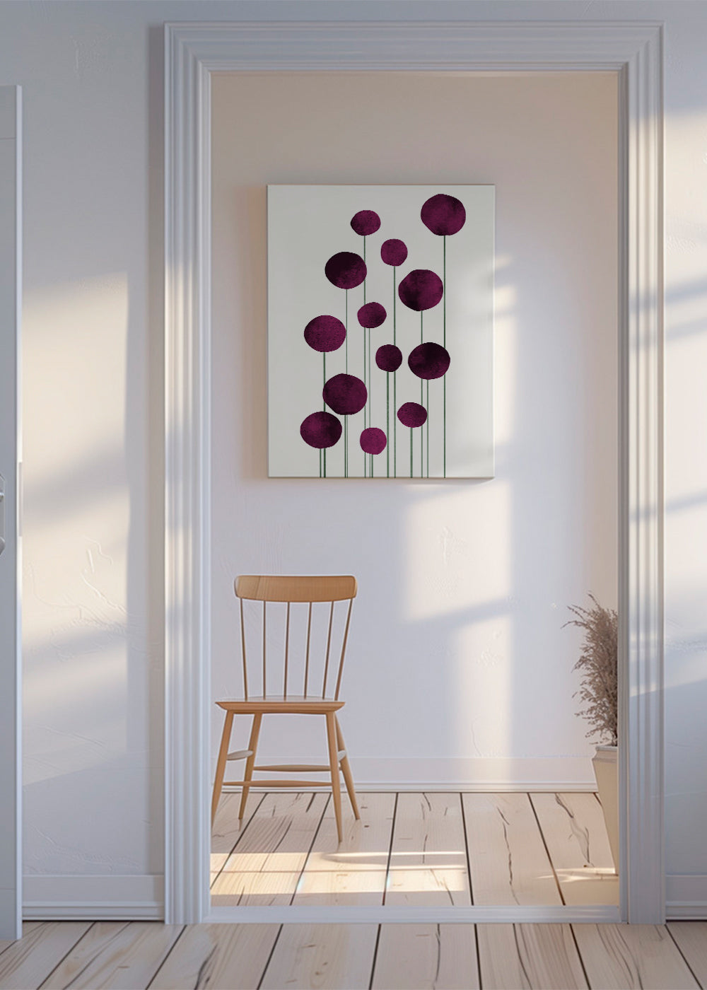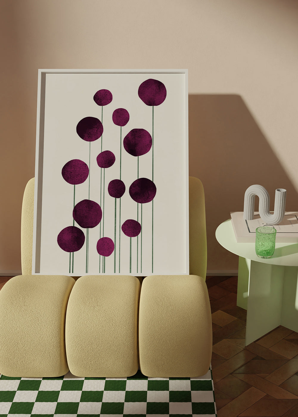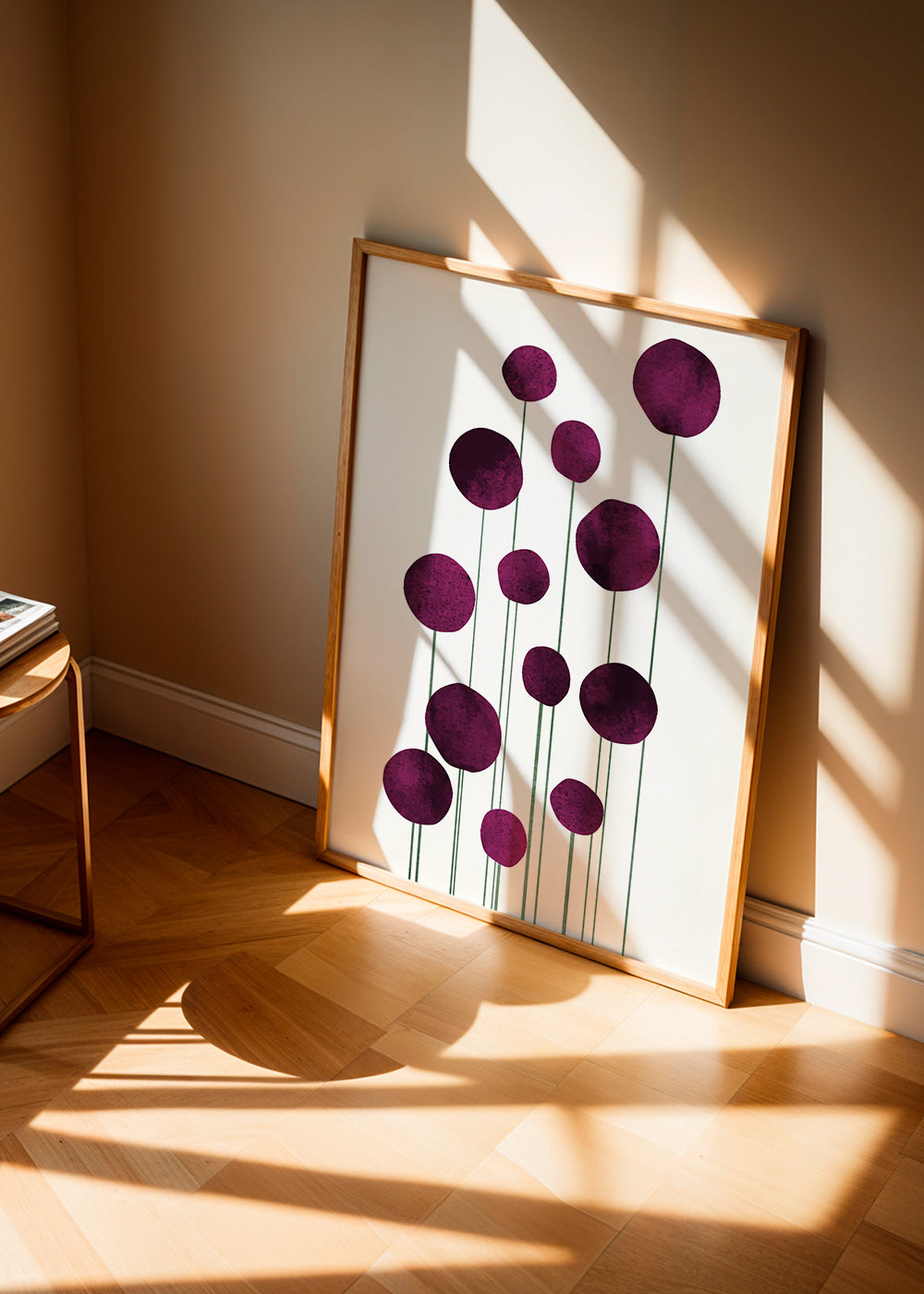 Un poster de notre ensemble tableaux de fleurs et botanique, conçue par Kubistika, avec des nuances de couleurs violets, et en position portrait. Une œuvre idéale pour les espaces qui respirent l'art et la créativité. Nos illustrations sont idéales pour décorer des espaces vides ou ennuyeux. Des murs élégants pour des maisons chics.