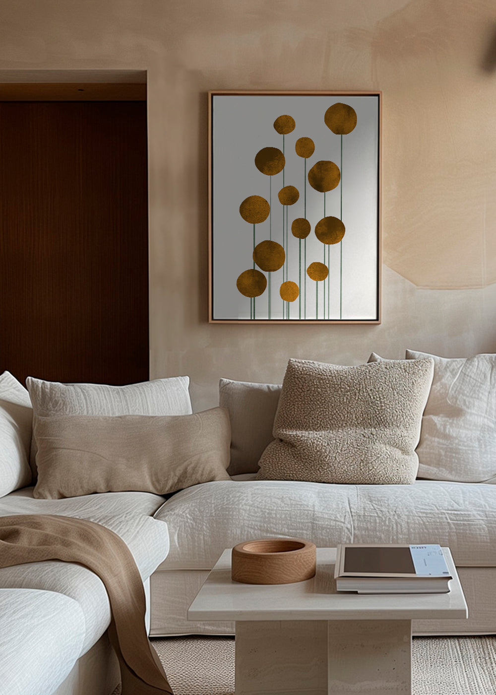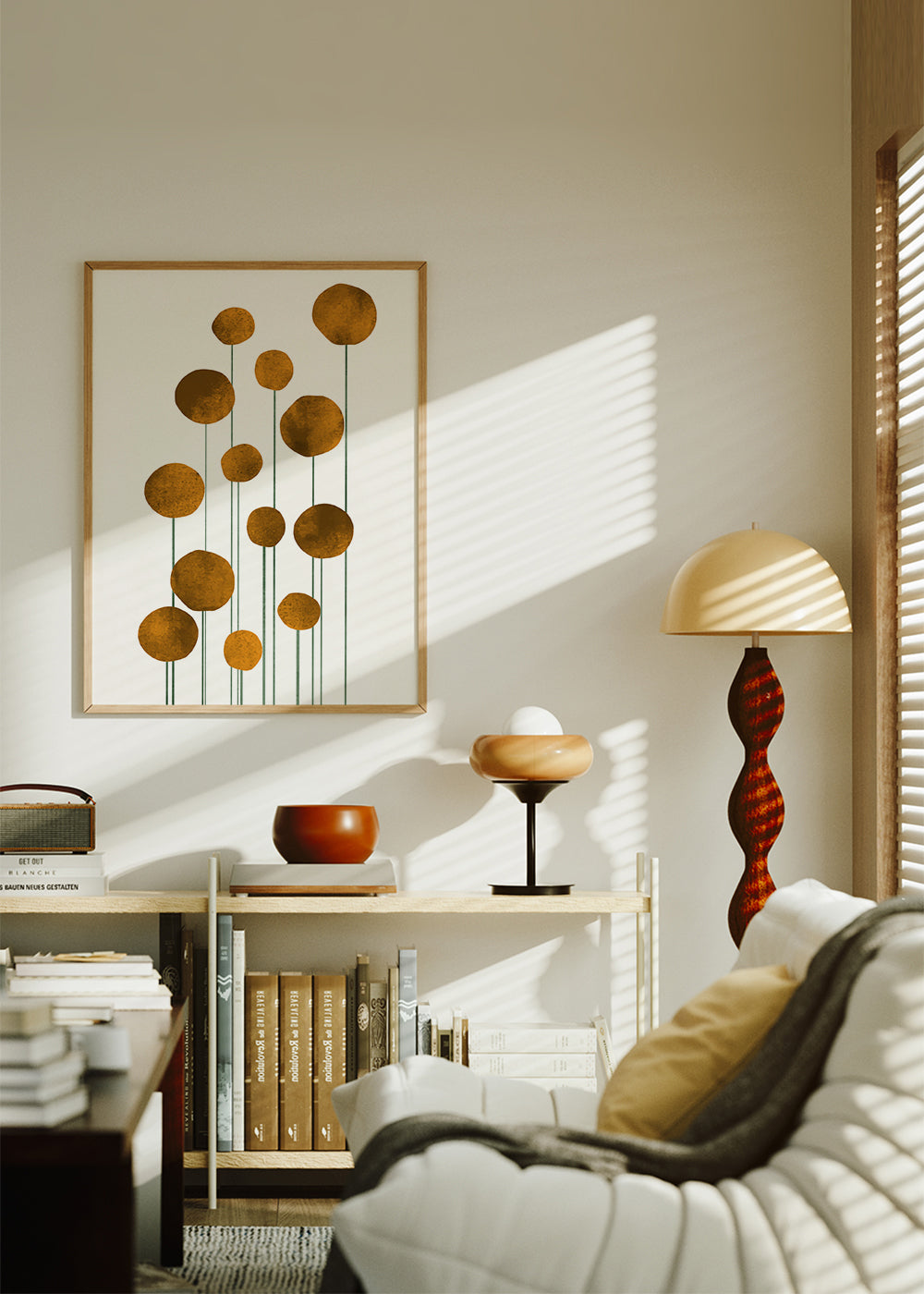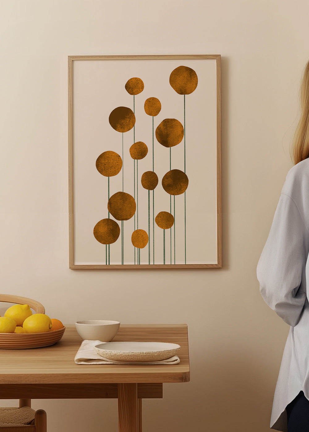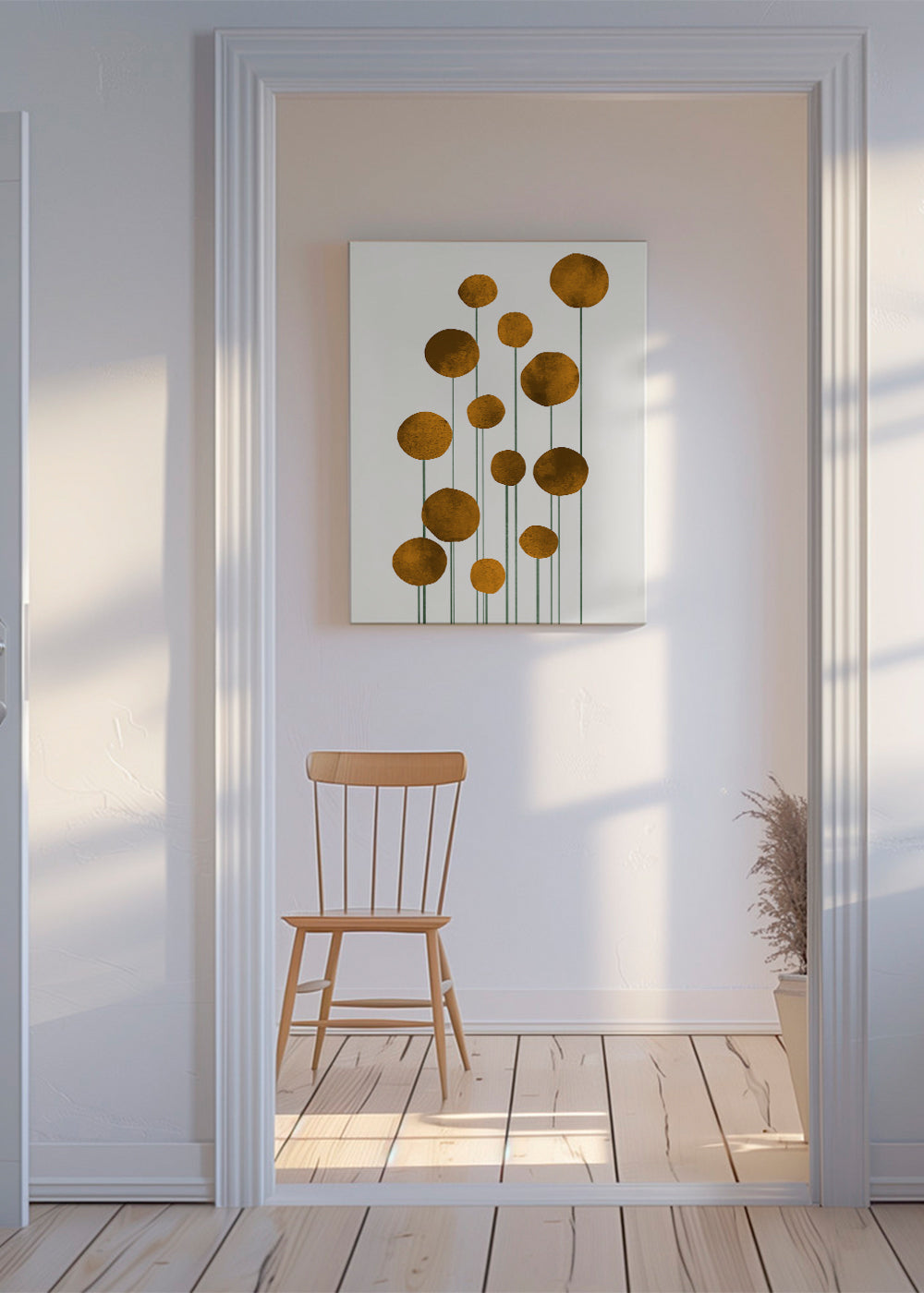 Jolie pièce de notre répertoire tableaux de fleurs et botanique, faite par Kubistika, dans des tons dorés, et pour mettre en position portrait. Les tableaux avec illustrations donnent une touche originale à la décoration de la maison. La combinaison parfaite de l'originalité et du design.