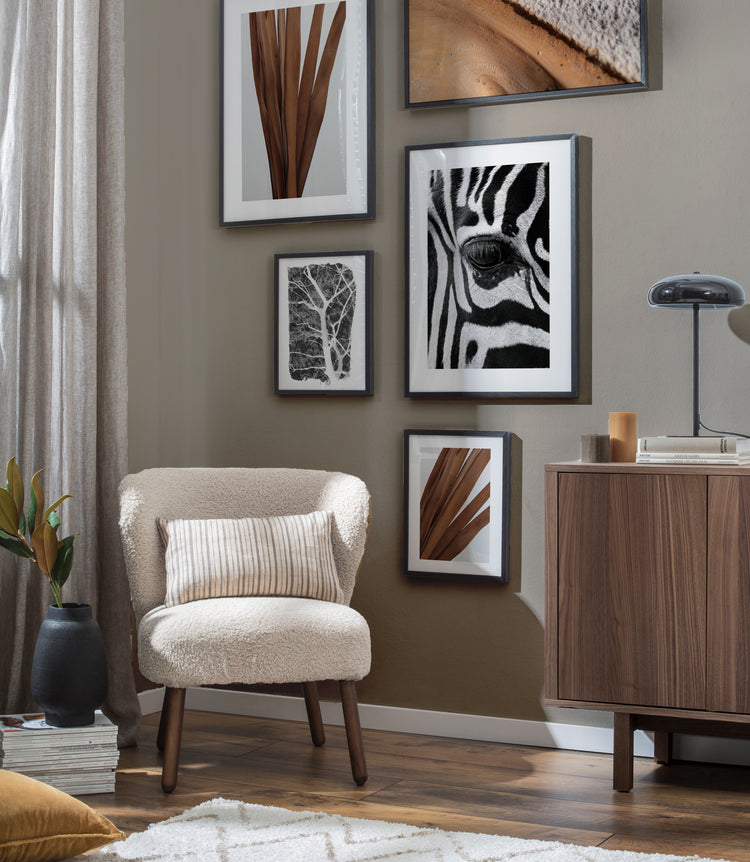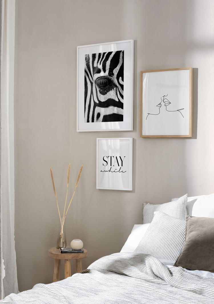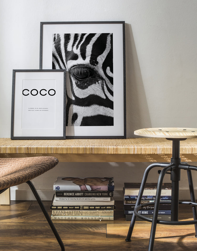Si vous combinez l'une de nos impressions avec l'un des cadres que nous proposons, vous recevrez les impressions encadrées et prêtes à être accrochées. Si vous achetez l'impression et le cadre séparément, ou si vous souhaitez inclure vos propres impressions, ouvrez les extrémités arrière, retirez la couverture et incluez votre feuille. C'est facile !
