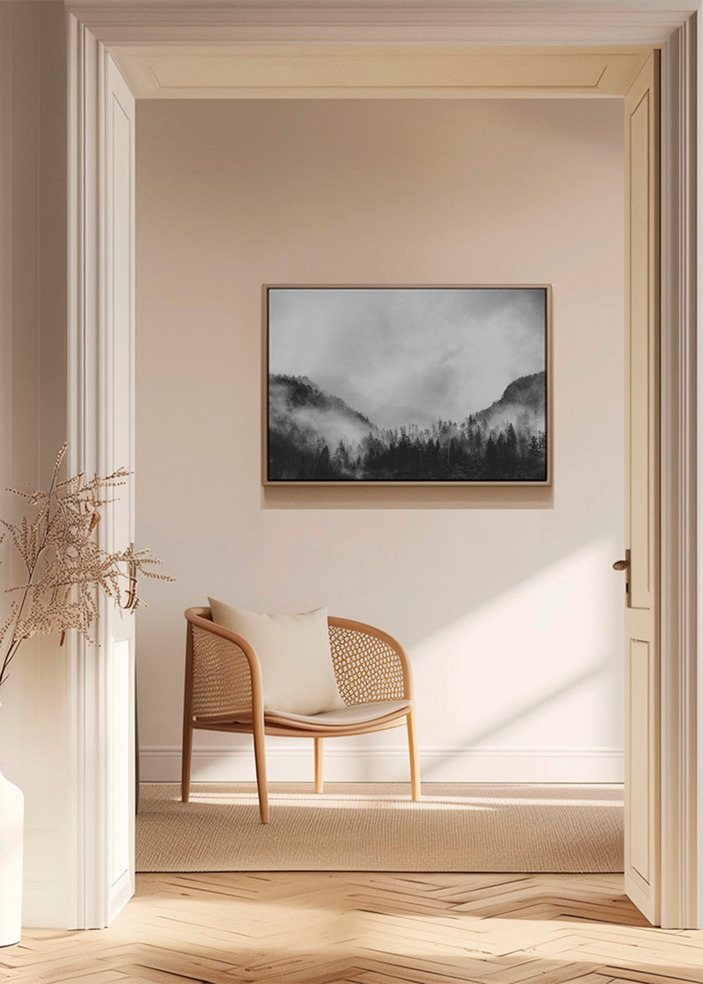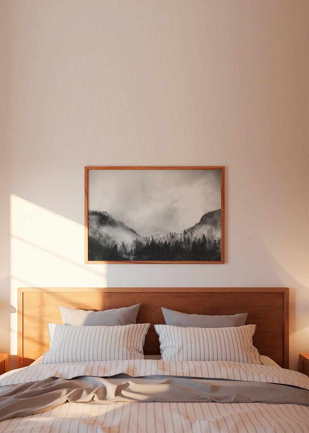 Un tableau de notre ensemble posters ciel nuages, de Nur Mut, avec pigments monochromes, et pour mettre en position format paysage. La décoration avec des paysages apporte un air de fraîcheur à tout votre intérieur. Habillez les murs de votre maison.